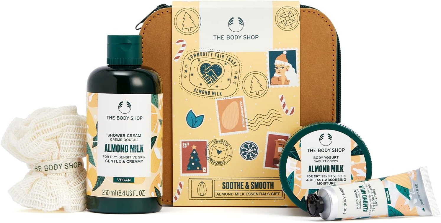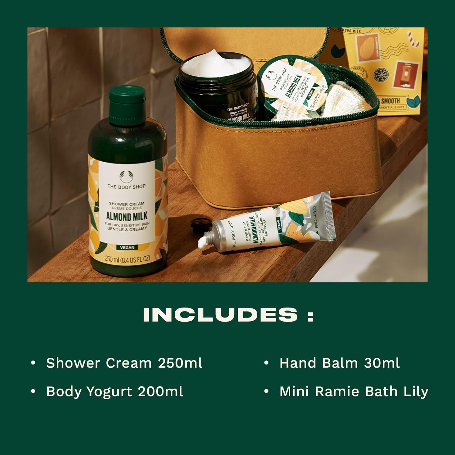 The Body Shop Soothe & Smooth Almond Milk Essentials Gift Set – Hydrating & Moisturizing Vegan Skincare Treats for Dry and Sensitive Skin – 4 Items