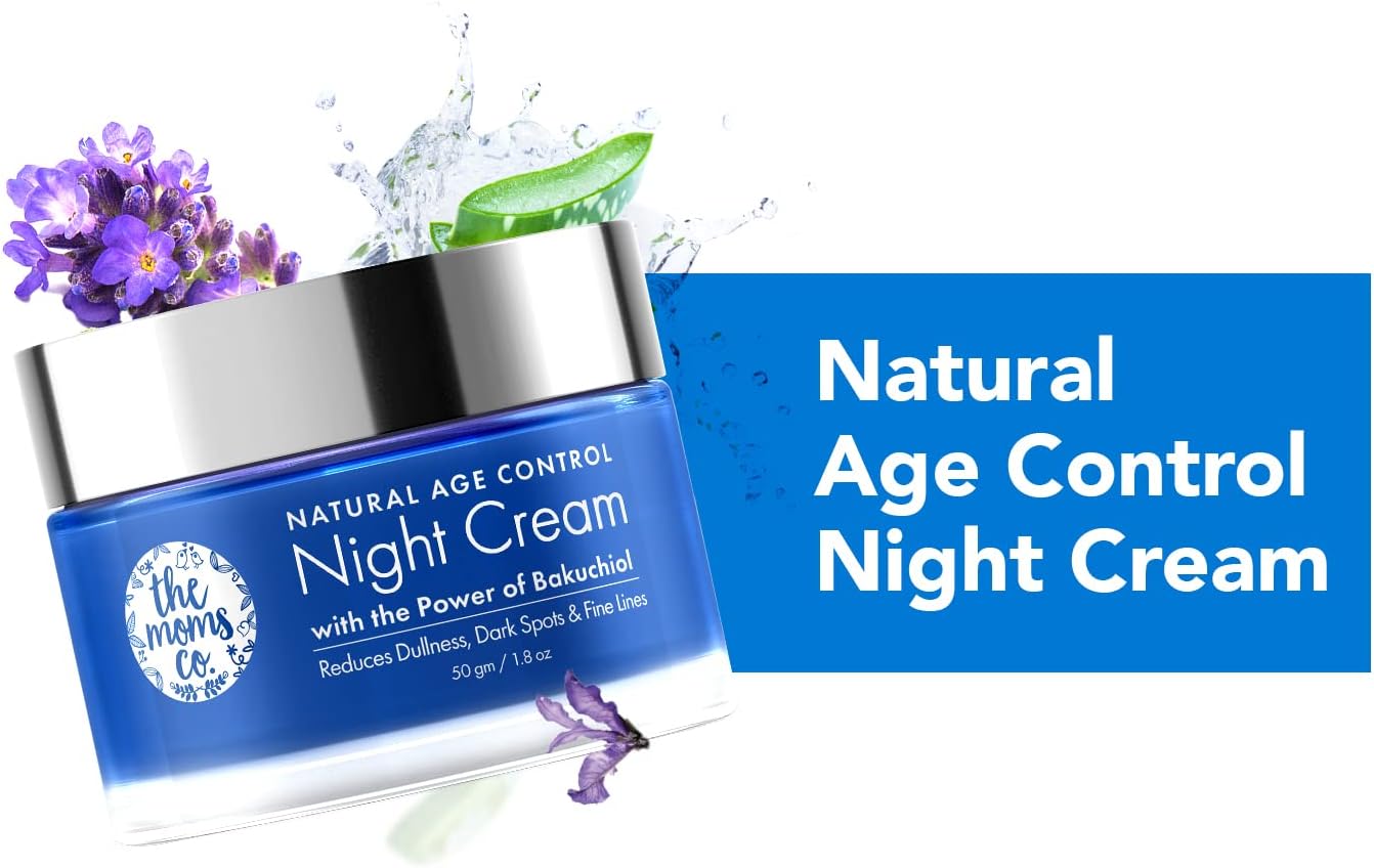 The Moms Co. Natural Age Control Night Cream for Women| With Bakuchiol (Natural Retinol) & Niacinamide| Reduces Fine Lines & Wrinkles| Night Cream For Women Anti-Ageing- 50g