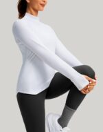 Thermal Shirts for Women Long Sleeve Mock Neck Fleece Tops Running Workout Cold Weather Gear with Zip Pocket