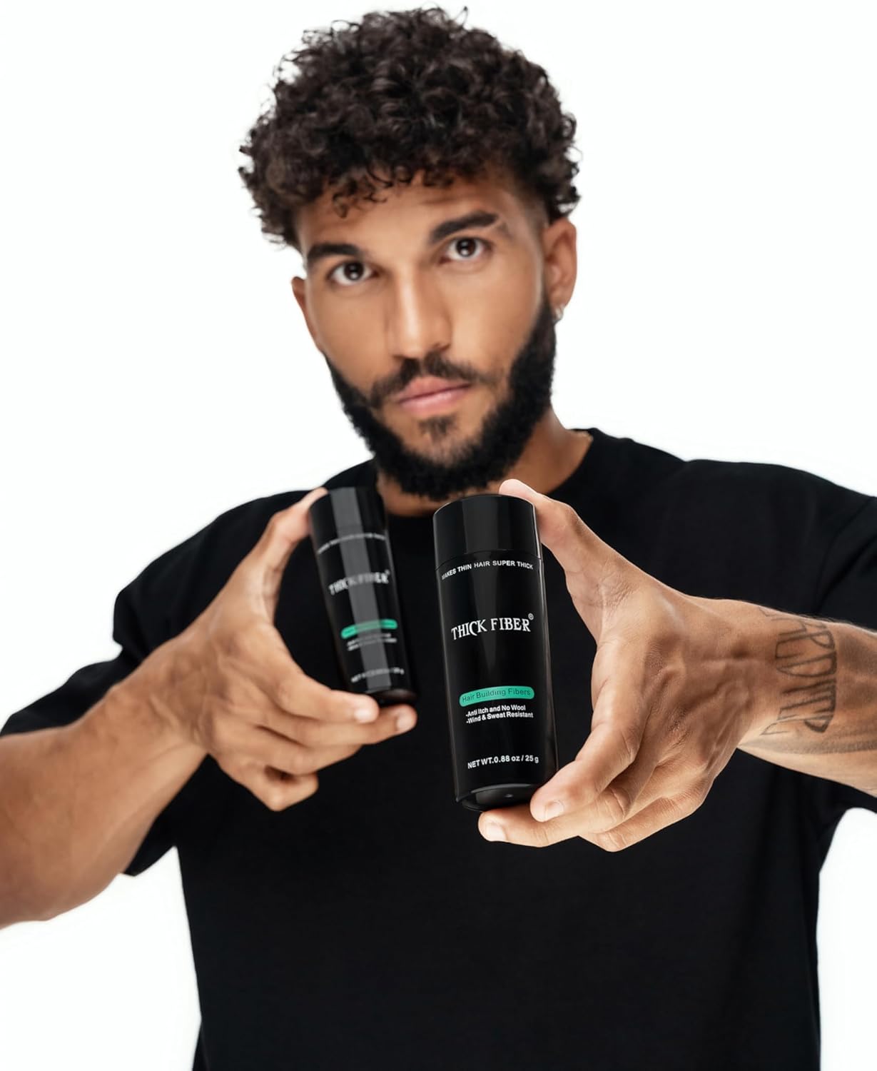 Stays on for long: THICK FIBER creates natural look. THICK FIBER Hair Fibers resist wind, rain, and moisture for long-lasting results in all conditions. Our hair powder for thinning hair for women and men is resistant to sweat too, allowing you to have your hair full and naturally thick even on the most active days. THICK FIBER will last until the hair is completely washed with shampoo.