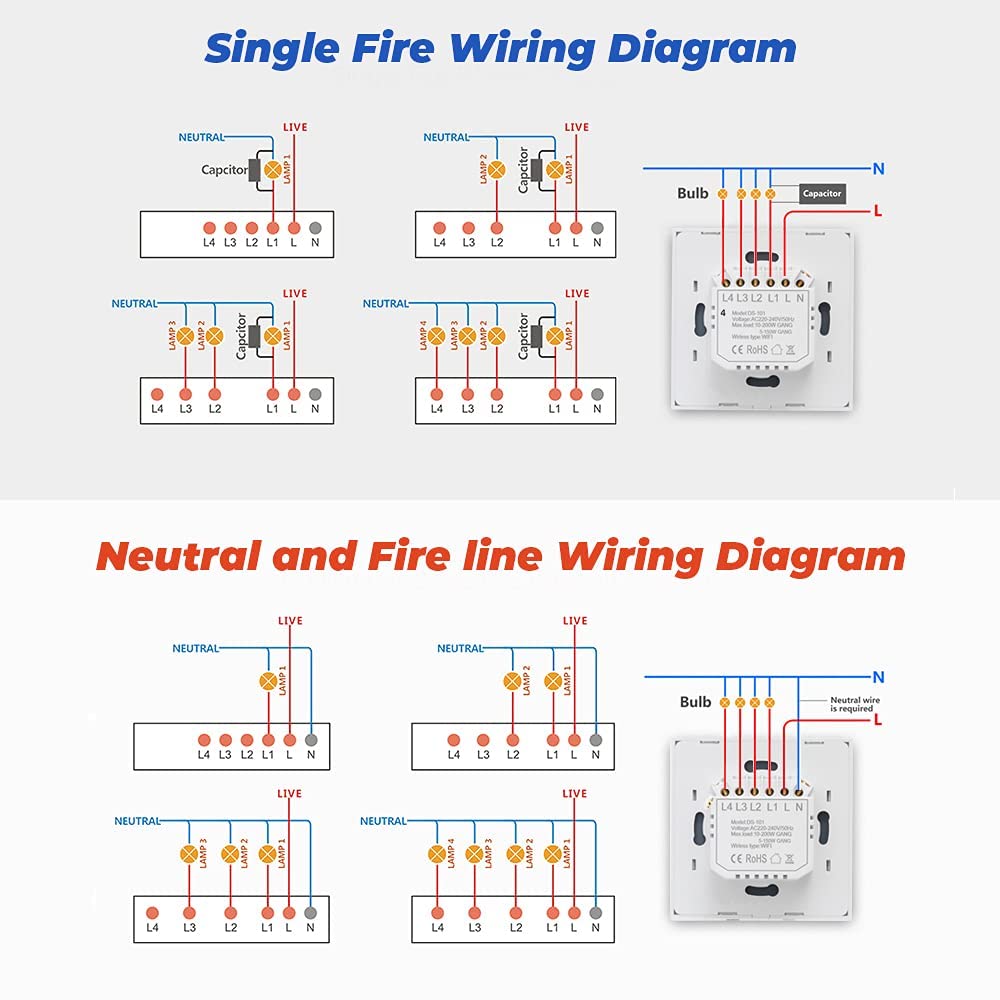 ✅【Two Wiring Methods】: Whether you have a neutral wire or not, this switch can meet your needs(Including capacitor). Sharing devices with your family members to eliminate extra steps for connection. Smart Scene: Creating your own scene to trigger ON/OFF home appliances by departure mode, home mode, temperature, humidity, or other environmental conditions.
