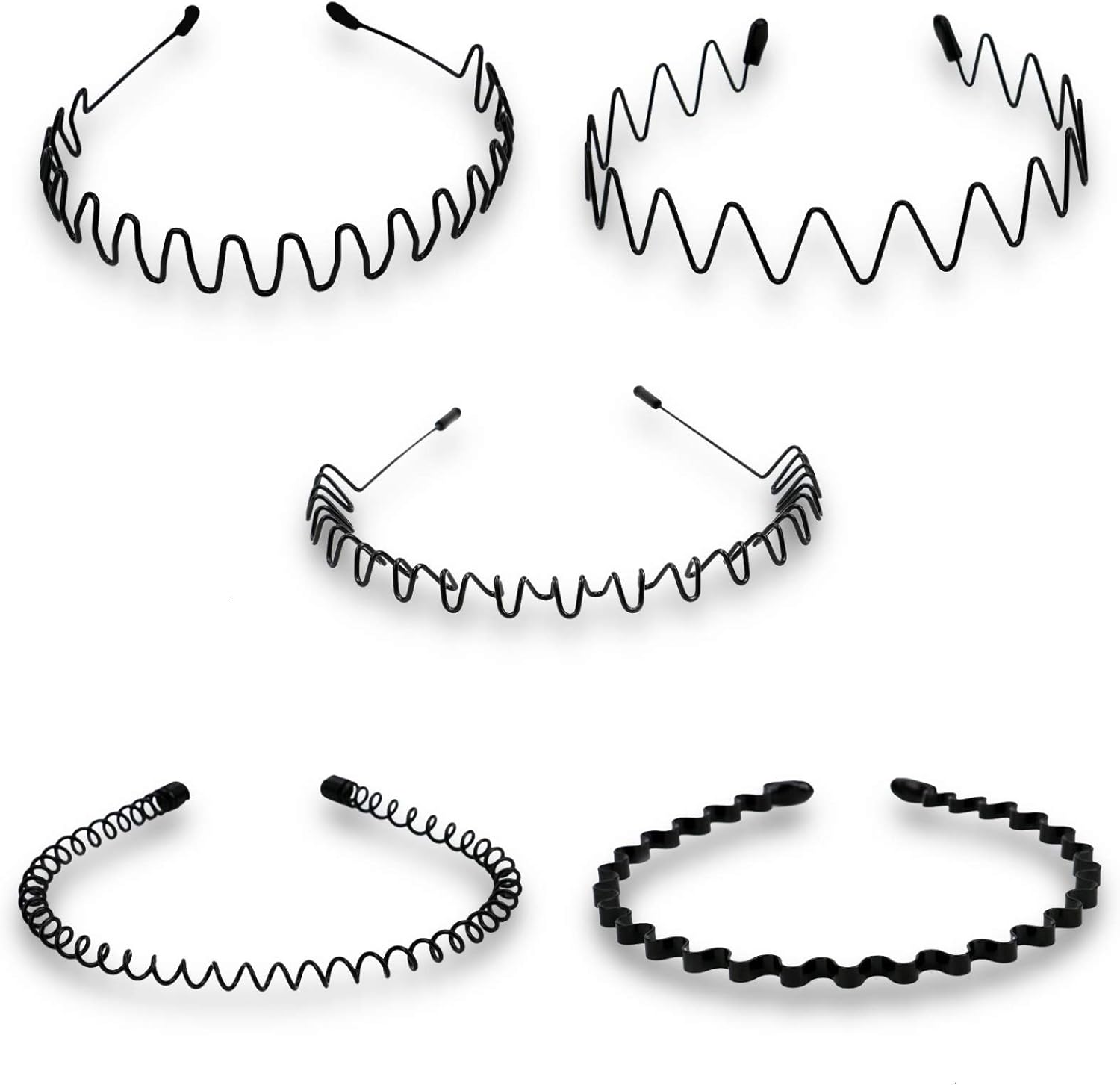 Timoo 5 PCS Metal Spring Wavy Hairband Hair Hoop, Simple Fashionable Headband Headwear Accessories for Men, Women, Black