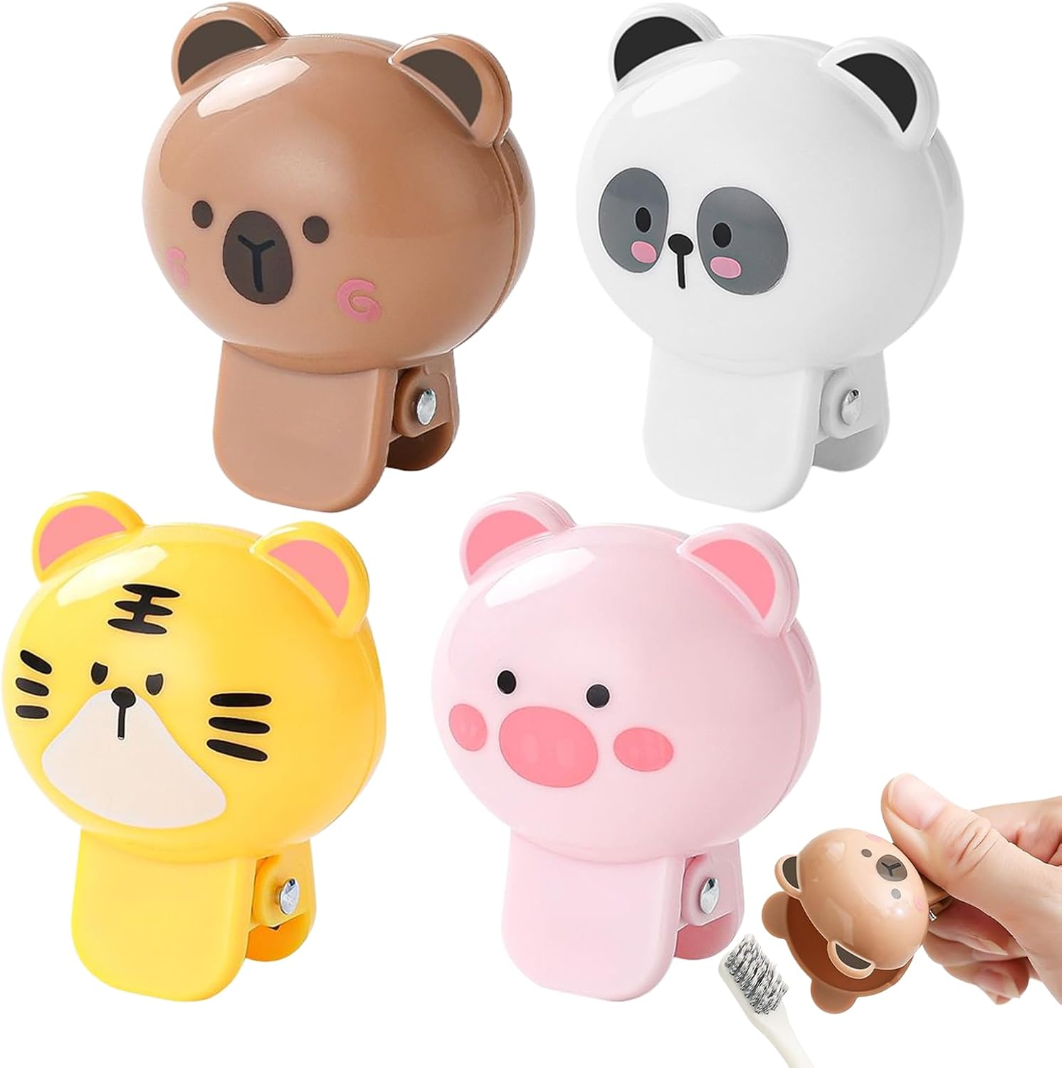 With an emphasis on hygiene, these compact toothbrush head covers include four pieces, designed to be dust-proof and protective through a secure clamp-on mechanism, suitable for bathroom setups or travel purposes, such as camping, dormitories, airports, hotels, and more. Their cute appearance appeals to users of all ages, including children, teens, adults, men, women, and the elderly, adding utility and charm to daily routines.