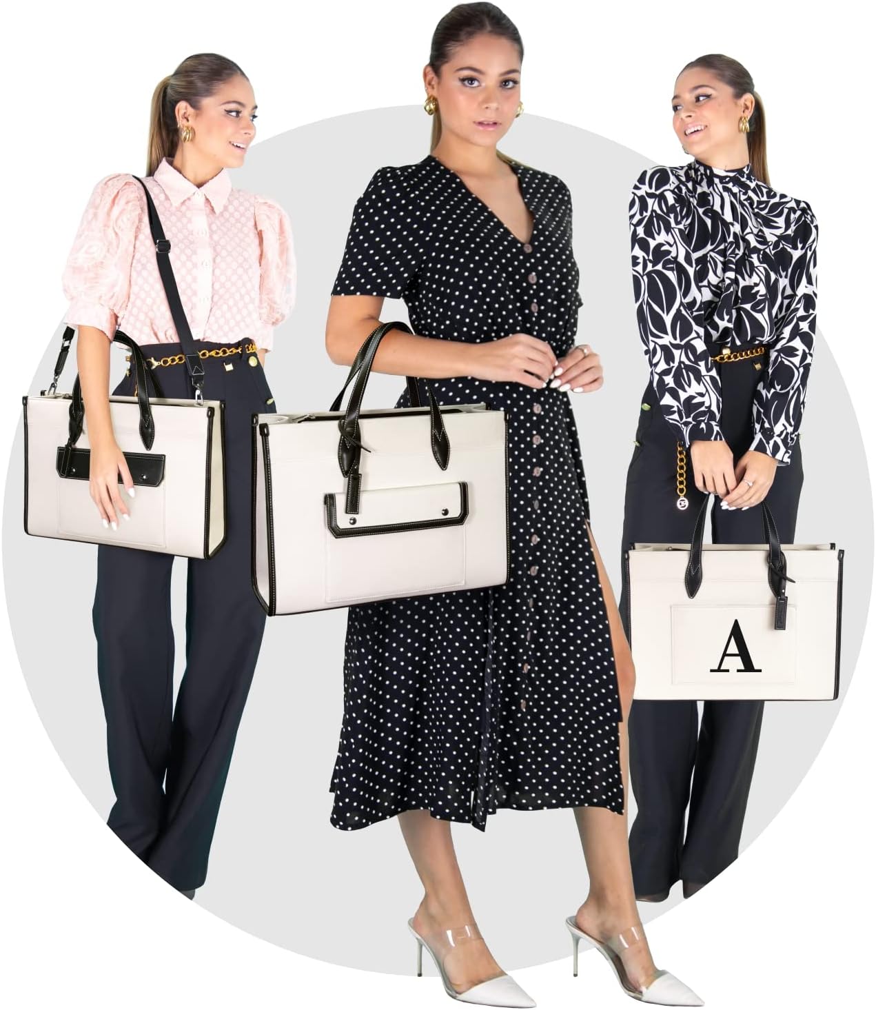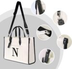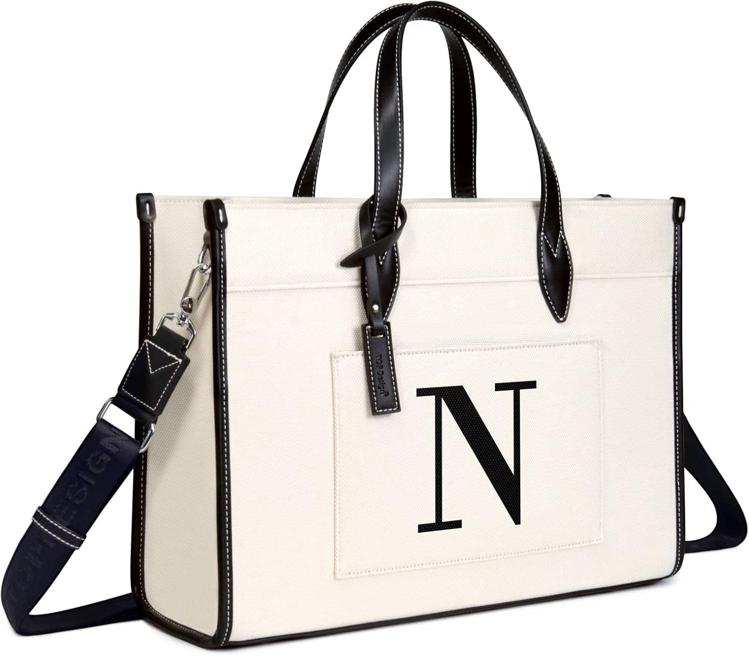 TOPDesign Initial Laptop Tote Bag for Women, Stylish Canvas Bag for 15.6 Inch Computer, Personalized Monogrammed Work Purse, Large Casual Business Briefcase, Office Handbag, Perfect Gifts for Her