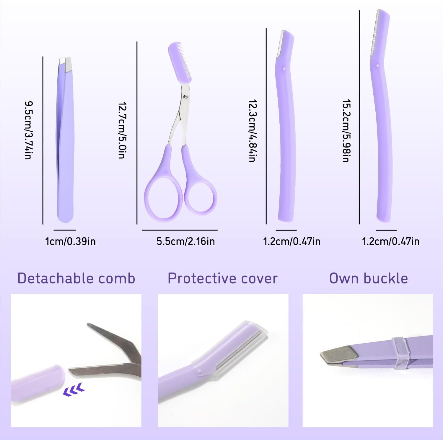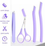Superior Precision: Each tool is designed for accuracy, with the razor offering gentle, pain-free hair removal and the tweezers’ sharp tips ensuring the removal of even the smallest hairs , Eyebrow Scissors with Comb Help you remove unwanted eyebrow and get pretty eyebrow shapes.