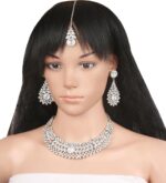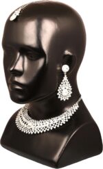 Be the first to review “Touchstone Hollywood Glamour scintillating white round and rivoli shape Rhinestone grand bridal designer jewelry hasli necklace set for women in silver tone”