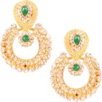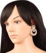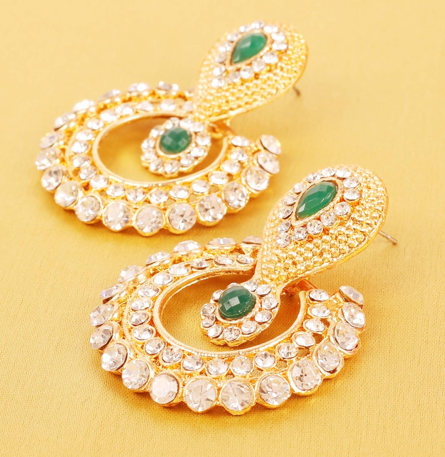 Alloy metal, Indian royal Mughal Kundan look jadau style pretty Chandbali Moon earrings, embellished with Rhinestone in gold tone.