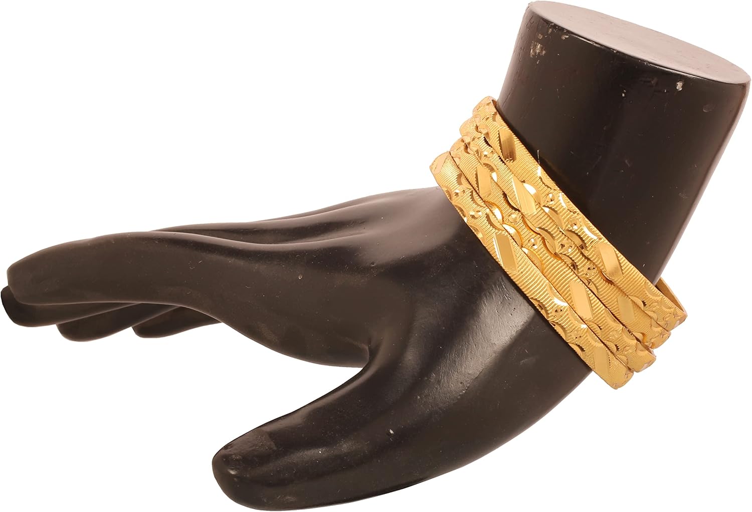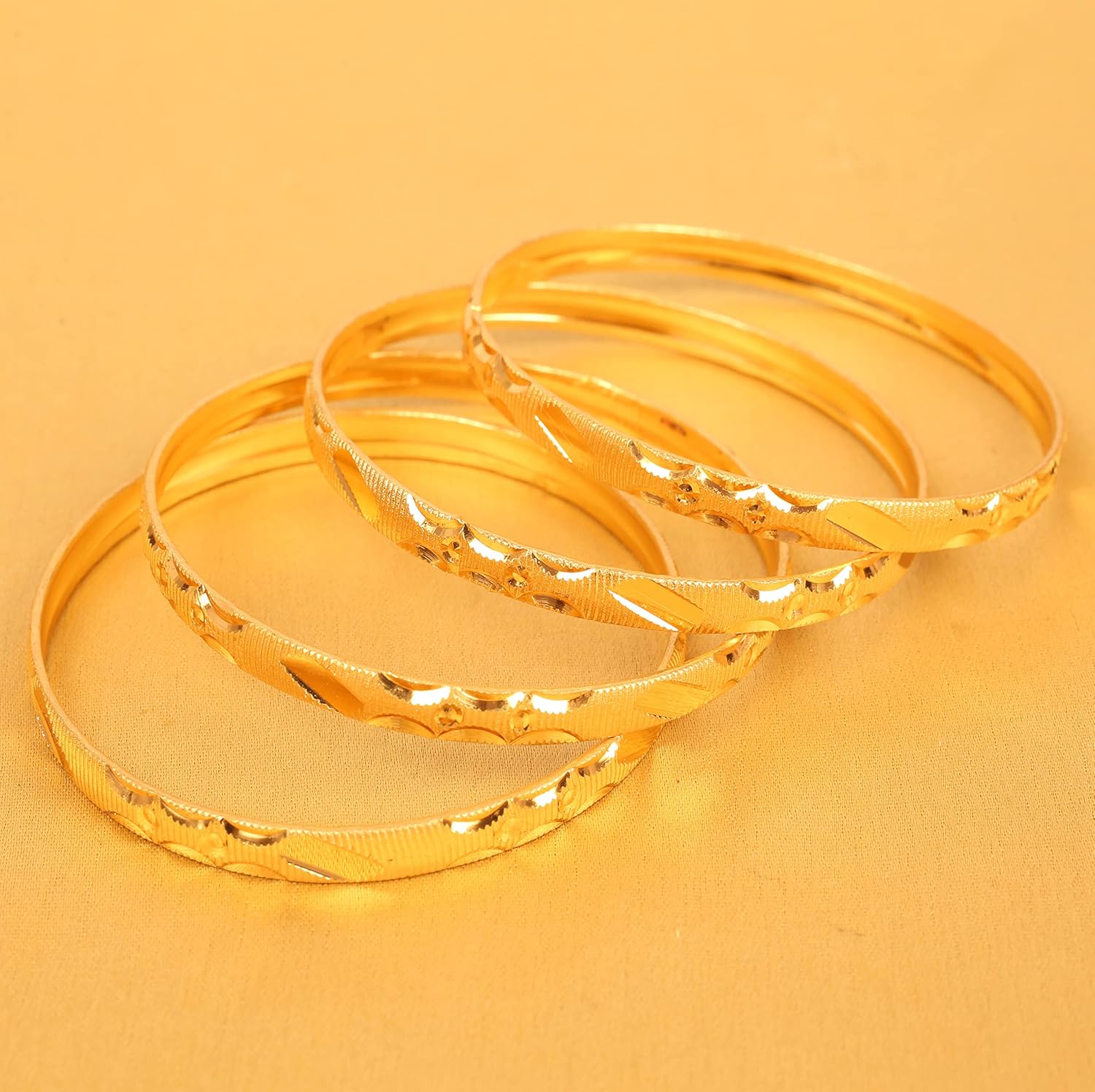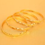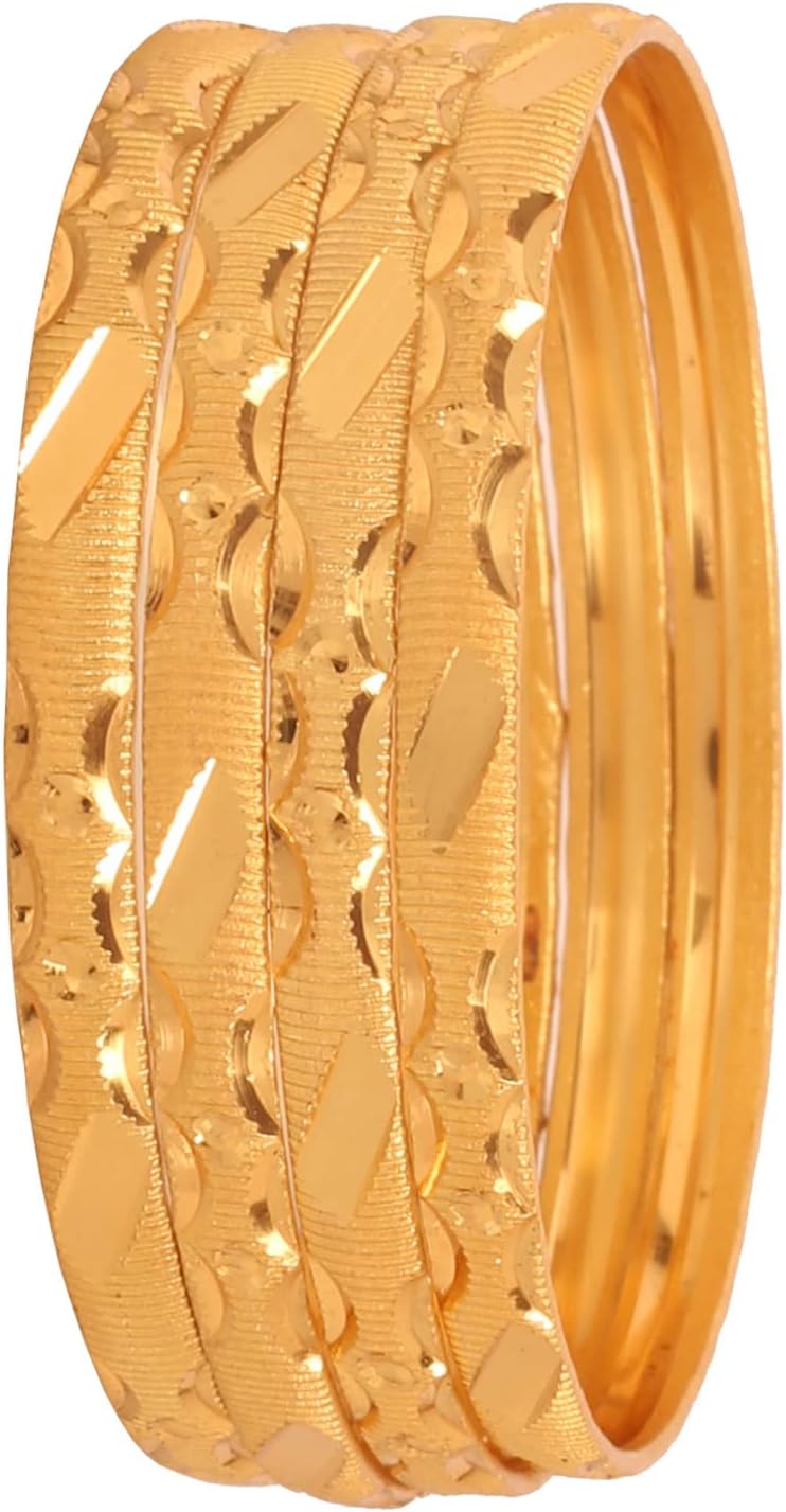 Brass base, pretty Indian gold jewelry artistic knitted mat work bangle bracelets in gold tone. Set of 4.