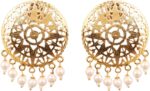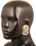Touchstone Indian Bollywood fine filigree jali handcrafted Designer Jewelry Earrings In Antique Gold And Silver Tone For Women.