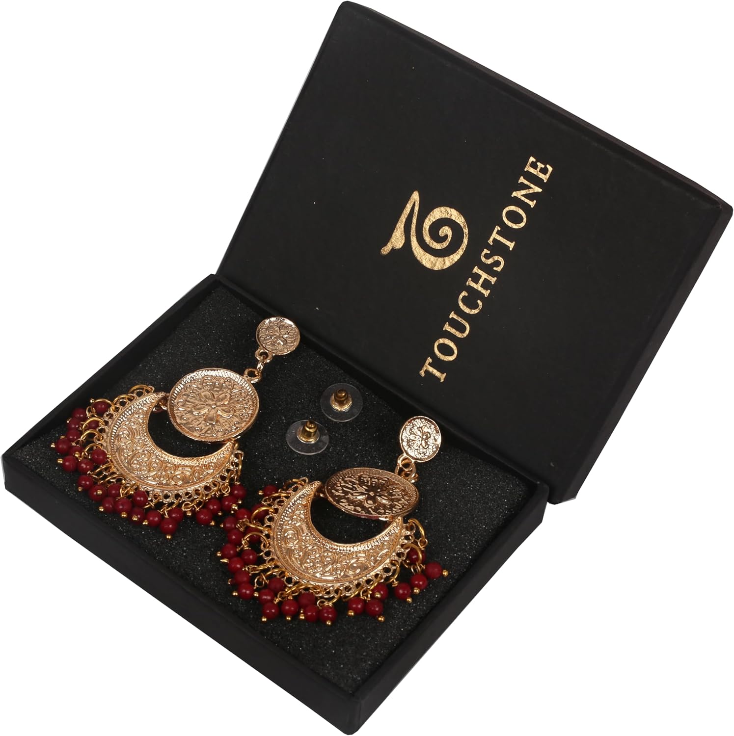 Touchstone Indian Bollywood Gypsy Tribal Boho Crescent Designer Jewelry Chandelier Earrings In Gold Silver Antique Tone For Women.