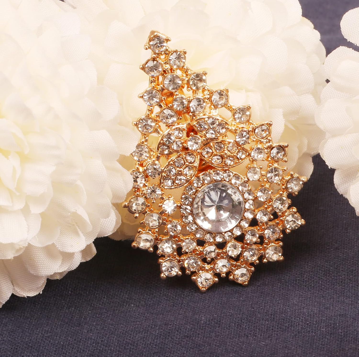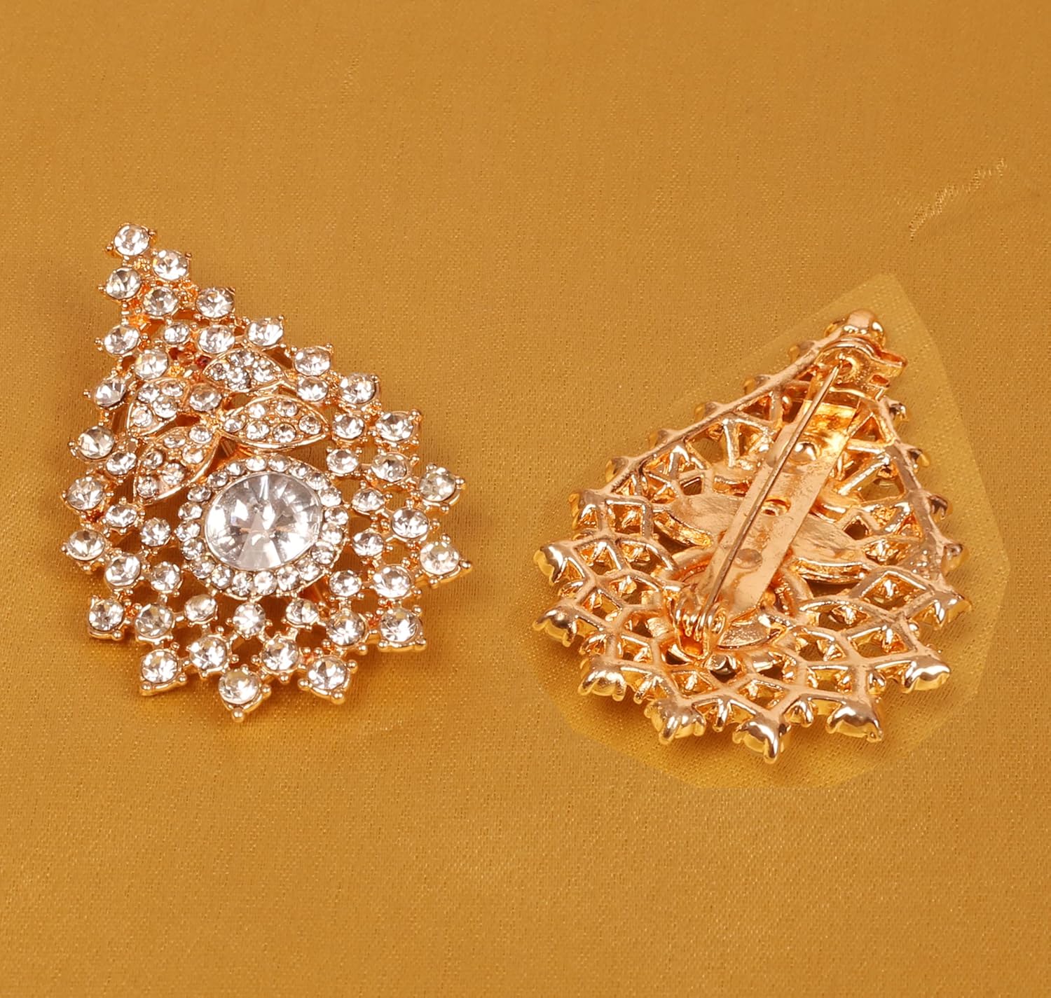 Touchstone Indian Bollywood Handcrafted Fine intricate brooch lapel pin Designer Jewelry Brooch in Silver Gold Tone For Women.