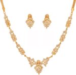 Alloy metal, Indian white Austrian crystals bridal designer necklace set in gold tone.