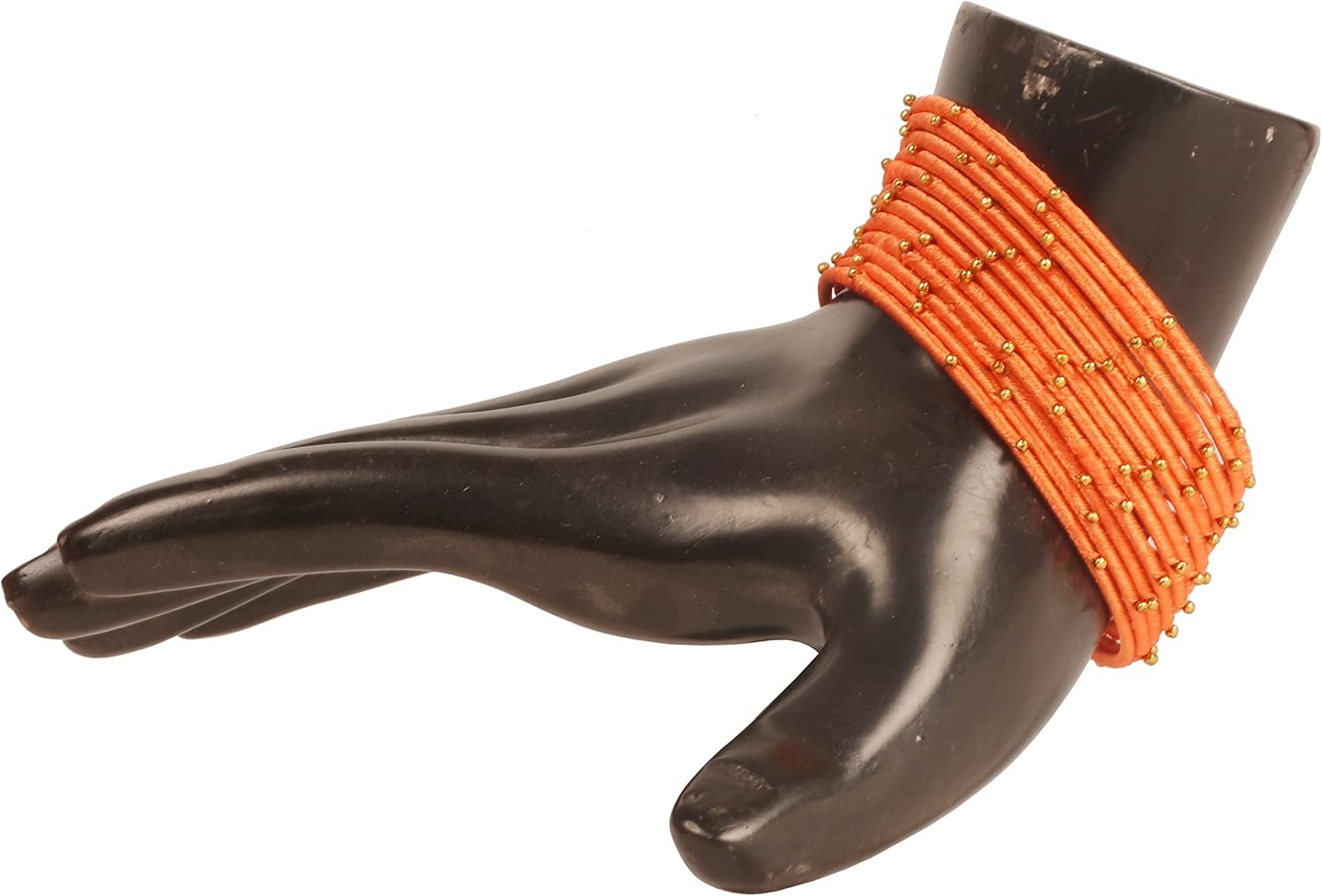 Touchstone Indian Bollywood Mystical Look Hand Woven Faux Silk Thread Golden Balls Gorgeous Color Exotic Designer Jewelry Bangle Bracelets for Women.