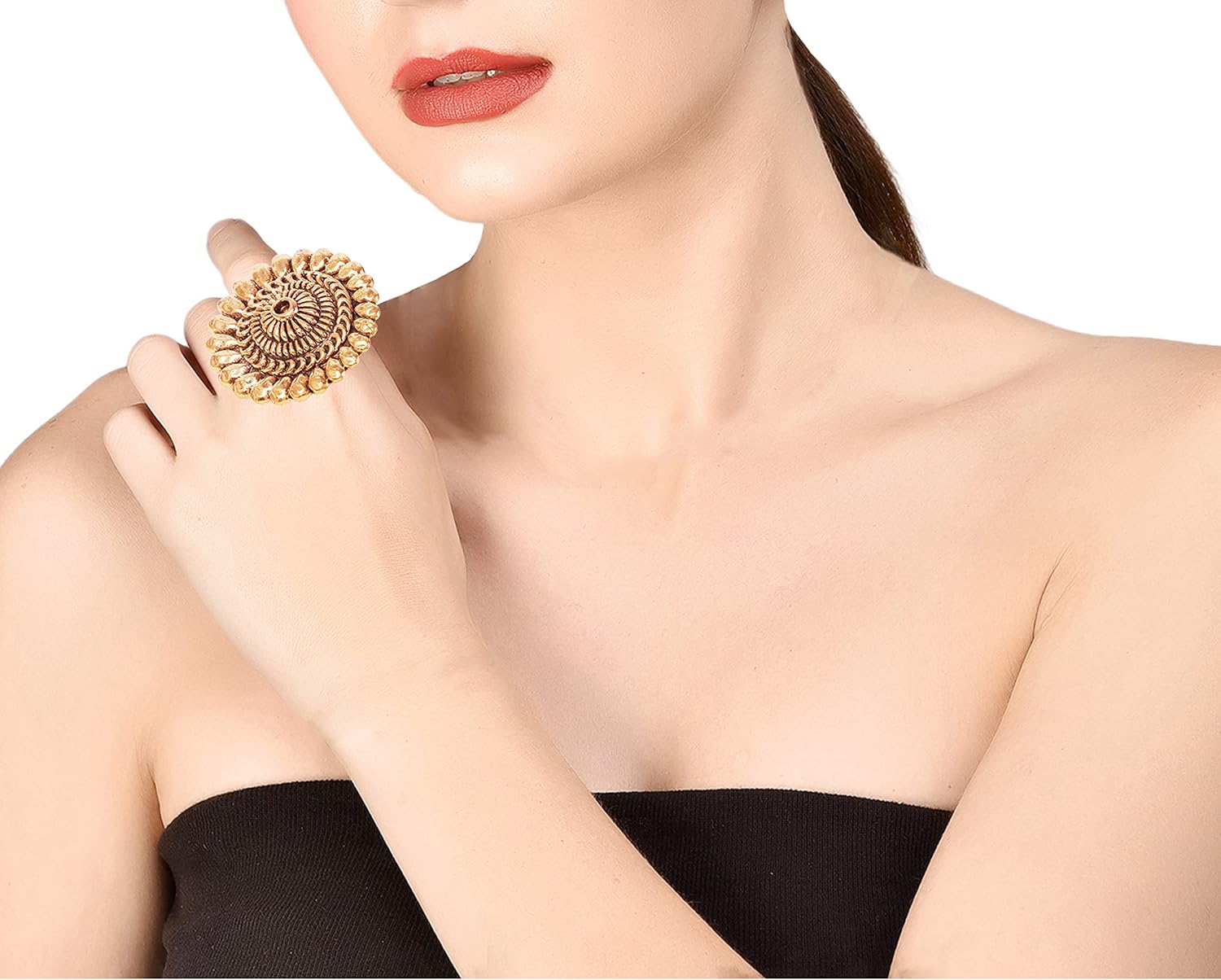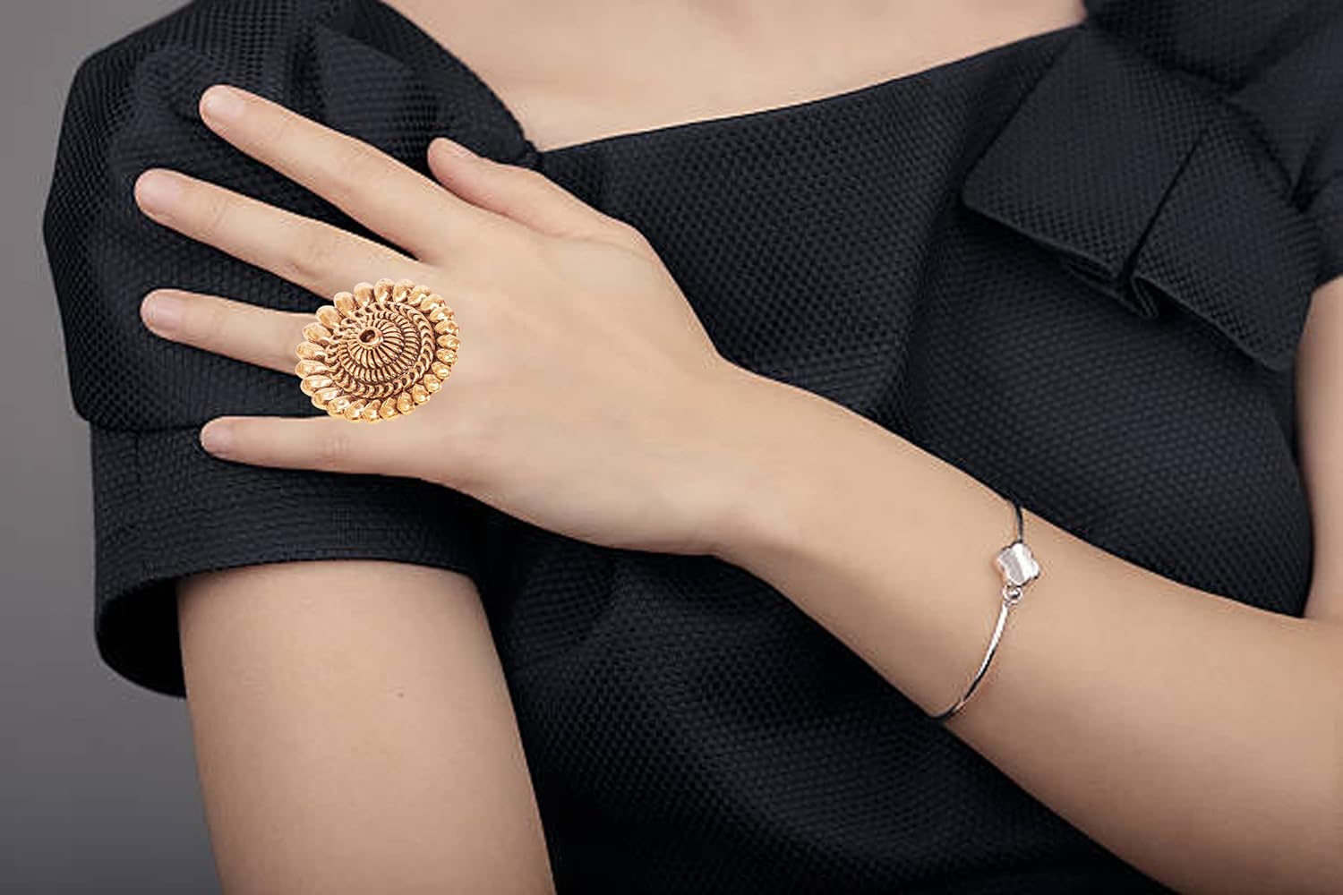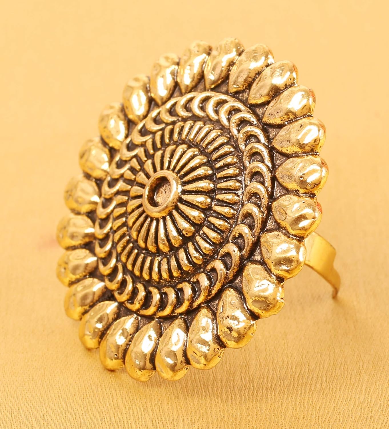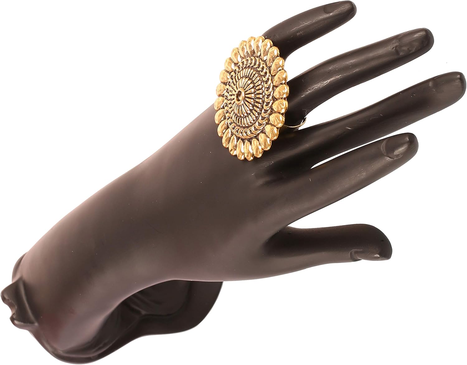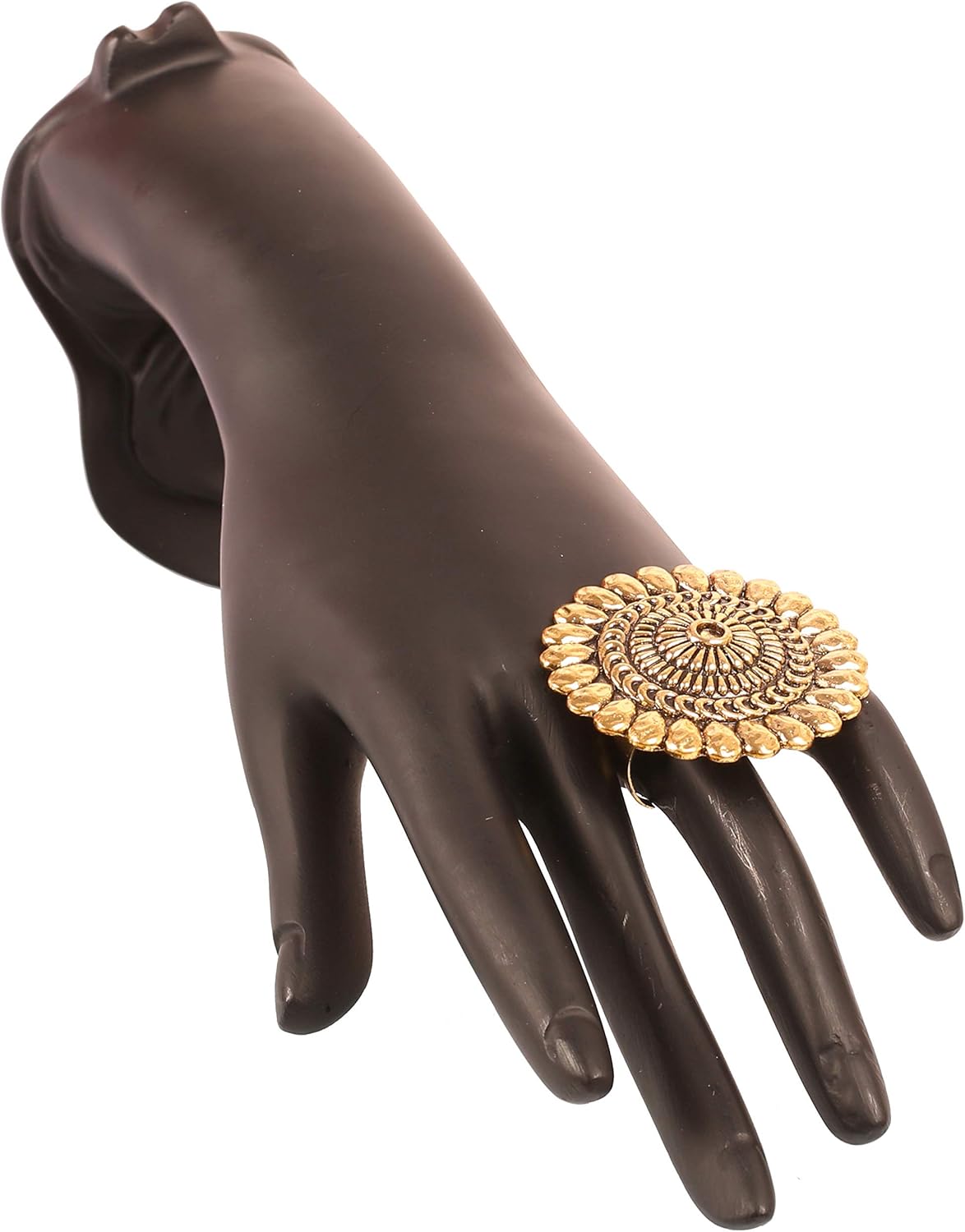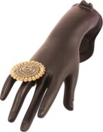 Touchstone Indian Bollywood Pretty Royal Adjustable Size Designer Wedding Jewelry large Cocktail Ring in Rhinestone crystal Gold Silver and Oxidized Tone For Women.