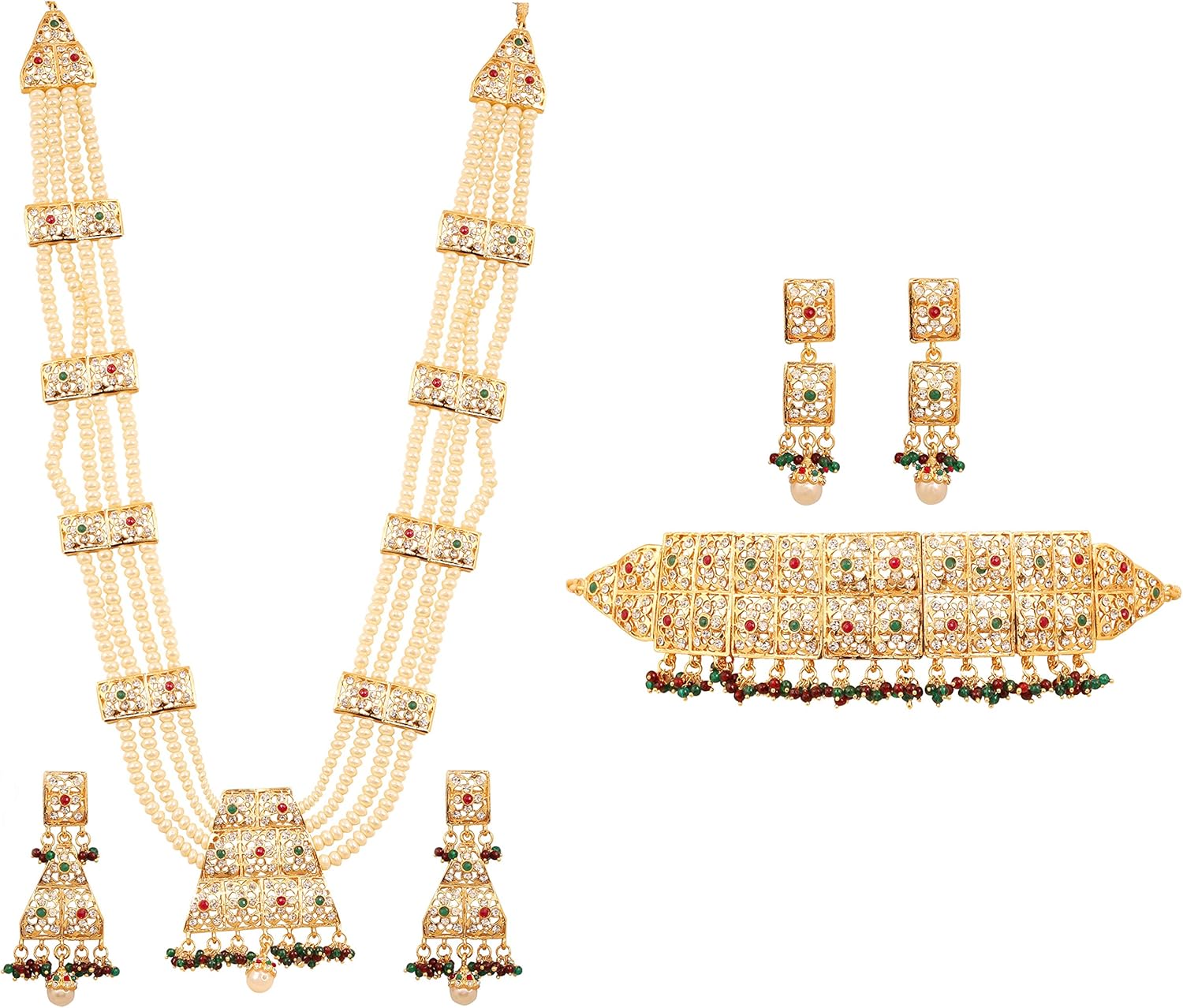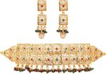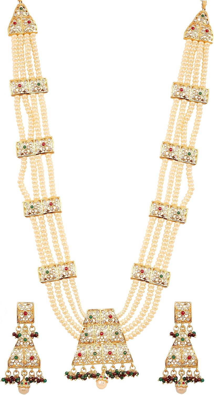 Touchstone “Mughal Jali collection” faux pearls/ruby bridal wedding rani haar necklace and choker in gold tone for women