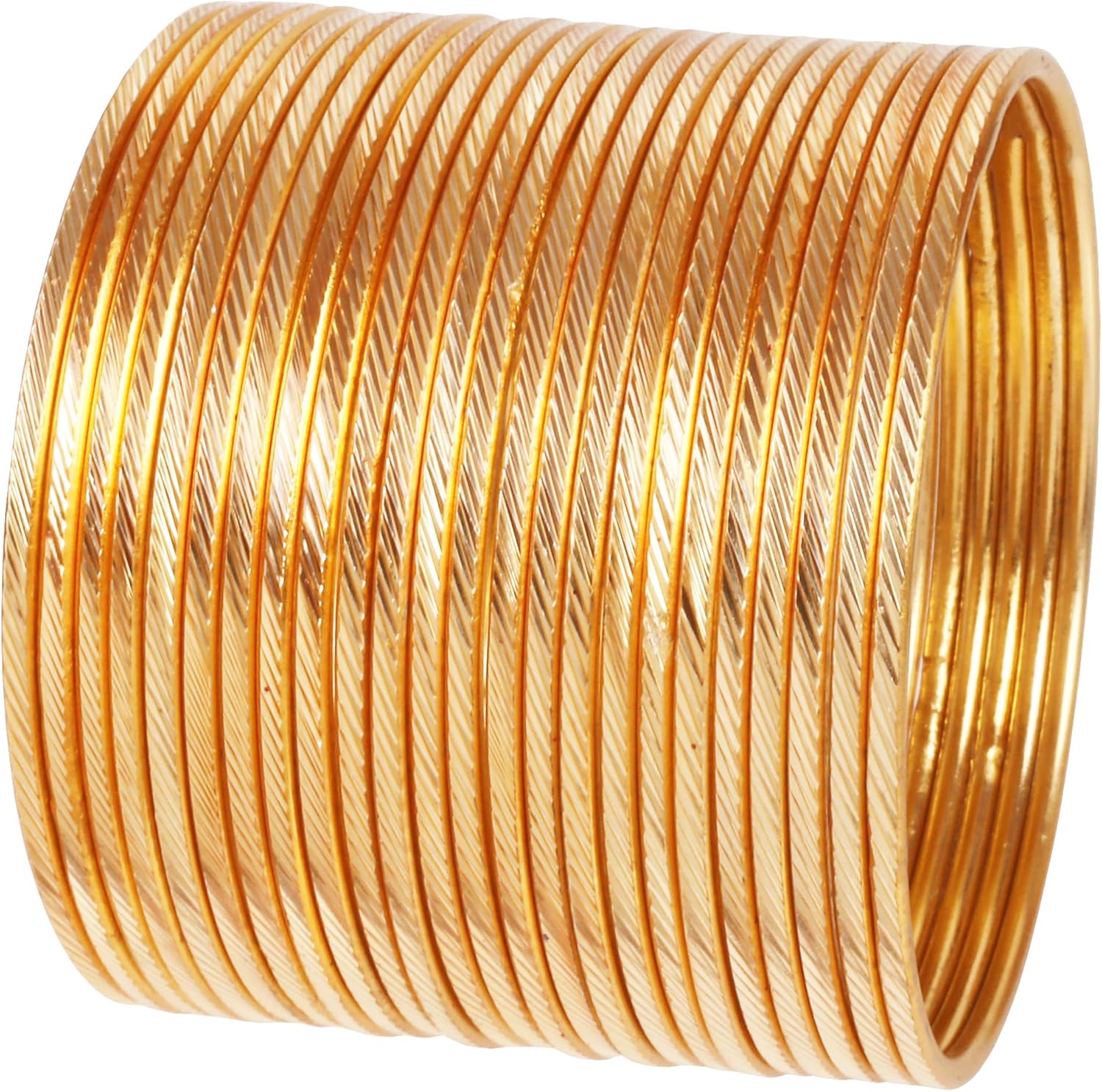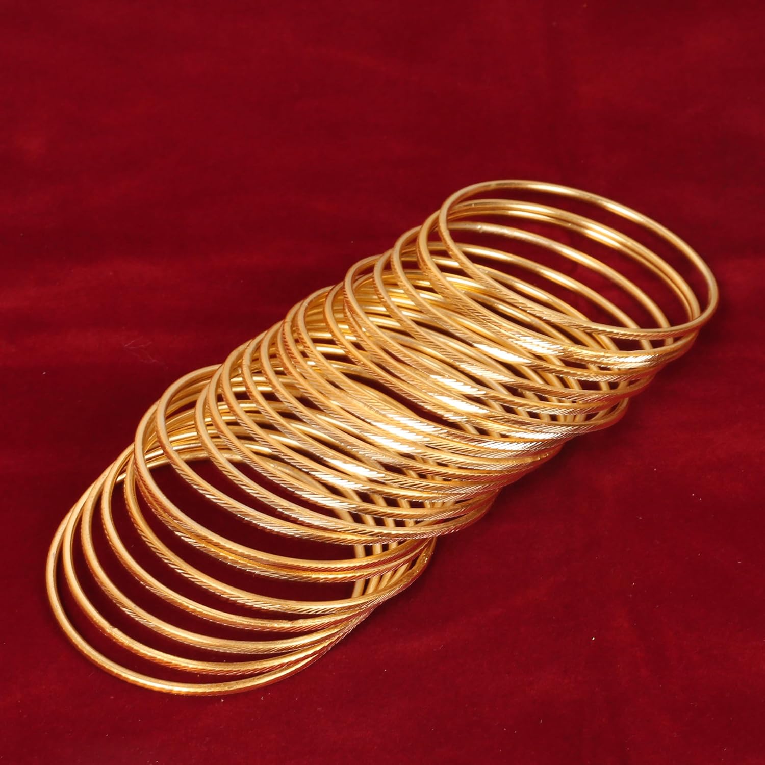 Touchstone NEW! Indian Bollywood Desire Handcrafted Exclusively Intricate Peeled Pattern Textured Golden Color Designer Jewelry Bracelets Bangle. Set Of 24 For Women.