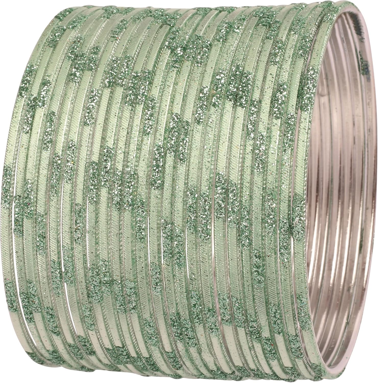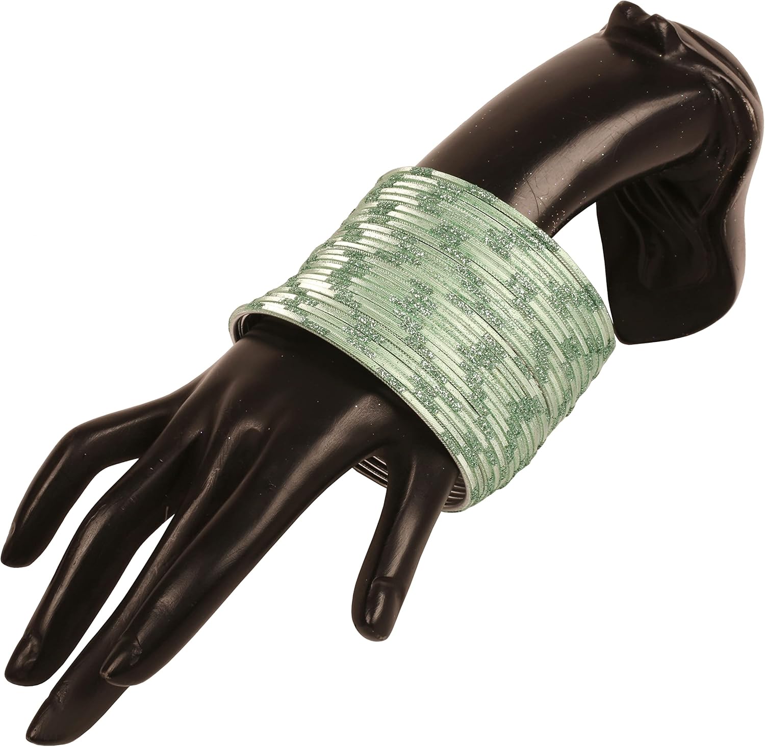 Touchstone NEW! Indian Bollywood Fresh Fashion Trend Setter Engraved Work Scintillating Rhinestone Moss Green Pastel Designer Jewelry Adorable Bracelets Bangle. Set Of 24.For Women.