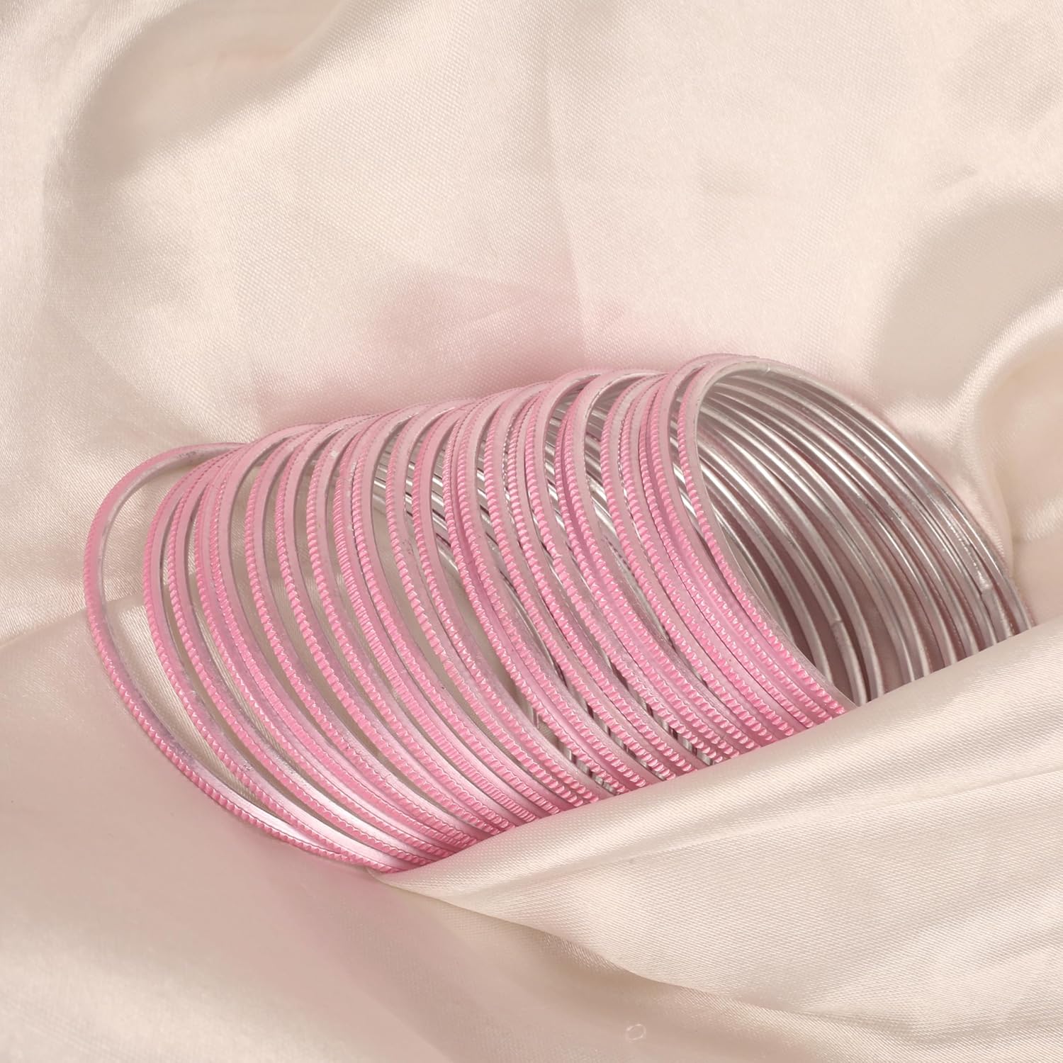 Touchstone NEW! Indian Bollywood Handcrafted Peeled Pattern “Italian Color Collection” Pastel Blush Pink Color Wrist Enhancing Designer Jewelry Bracelets Bangle. Set Of 24. For Women.