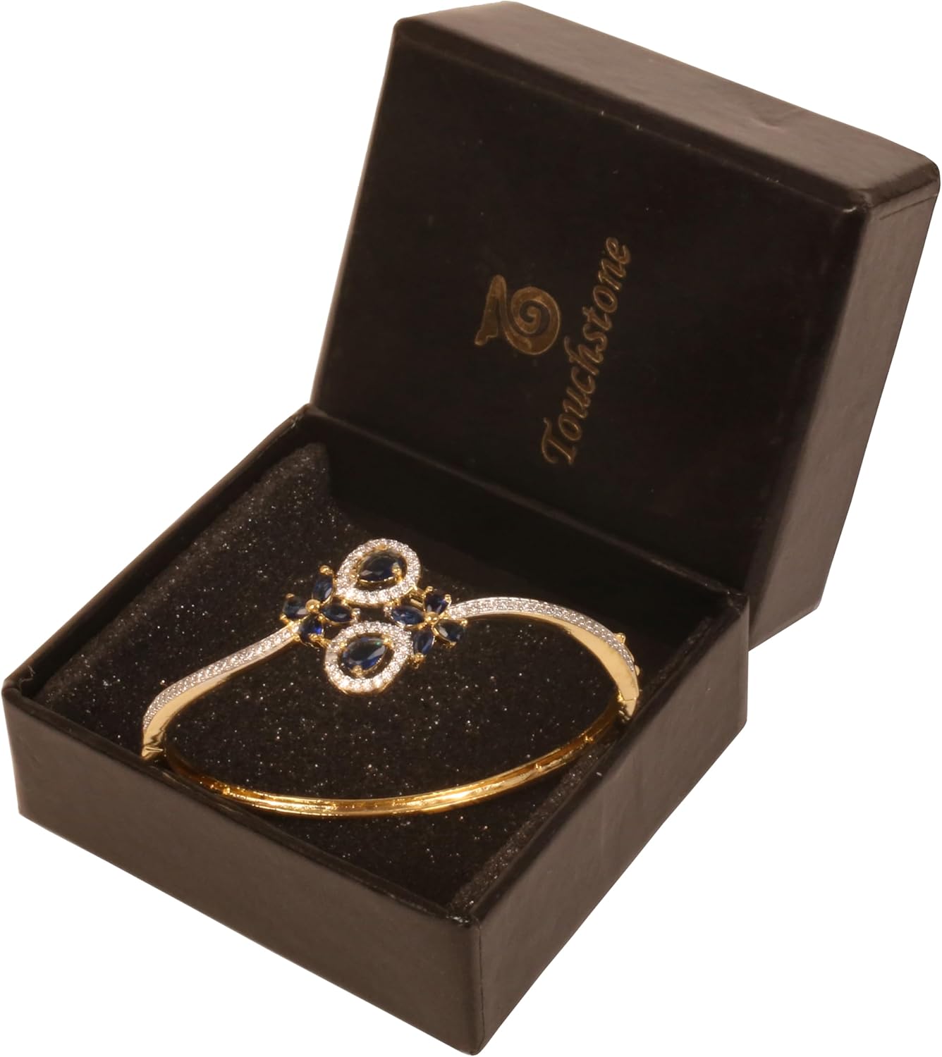 Touchstone NEW! Indian Bollywood Stunning Floral Theme Marquise Oval Shapes Faux Blue Sapphire White Cubic Zirconia CZs Designer Jewelry Openable Bracelet In Gold Tone For Women.