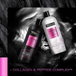 Flat hair got you down? For instant body and lift that lasts, use TRESemmé 24 Hour Volume Shampoo for fine hair, delivering all day body and bounce that’s manageable and never weighed down. Pump up the volume and start your style right by washing with our TRESemmé 24 Hour Volume Shampoo and Conditioner System to your hair care routine. Formulated with Collagen and Peptide Complex, this lightweight, volumizing hair shampoo and conditioner duo revives fine strands for instant body and voluminous looking hair. Formulated with amino acids and ceramide, this salon level Pro Style Technology makes hair 3x stronger, 3x more manageable, and resistant from breakage (vs. a non conditioning shampoo). Make your hair the perfect canvas with this 24 Hour Volume Shampoo. The volumizing hair care ingredients in our 24 Hour Volume Collection deliver big, beautiful body and bounce, which means you can finally achieve all the voluminous styles you desire. Light enough to use as a daily cleansing shampoo, it gives your hair enviable softness and lift without leaving behind any buildup or weighing your locks down Step 1: Coat wet hair with a liberal amount of TRESemmé 24 Hour Volume Shampoo. Step 2: Gently massage the scalp and roots with fingertips to work into a lather Step 3: Work the volumizing shampoo through hair from the roots to ends and rinse thoroughly. Step 4: Finish with 24 Hour Volume Conditioner and style with your favorite TRESemme styling products. Volumizing TRESemmé 24 Hour Volume Shampoo is one of our best volume hair products to help maintain all day volume and bounce, without weighing your hair down