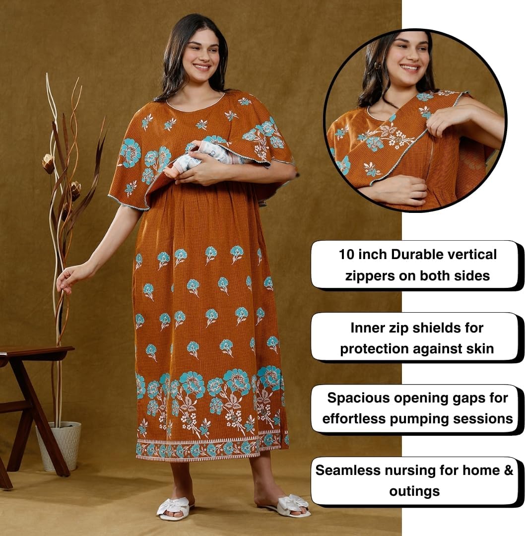True Shape Maternity Gown for Women | Polyester Blended Feeding Poncho Night Dress with Attached Cape, Dual Concealed Zip Nursing & Convenient Pockets for Pre & Post Pregnancy