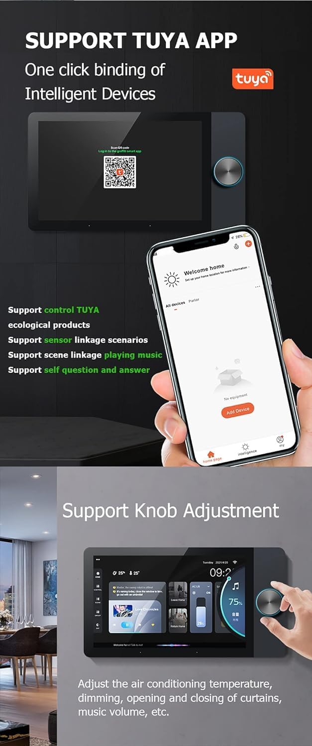 Tuya wifi Multi-functional Touch Screen Control Panel in-wall Central Controller for Intelligent Scenes Smart Home (8 Inch Control Panel)