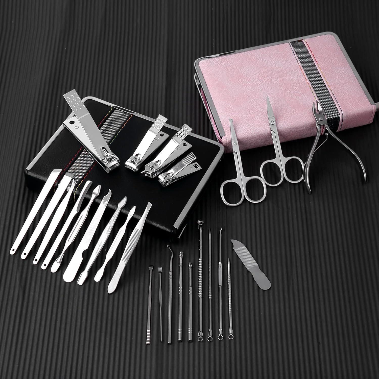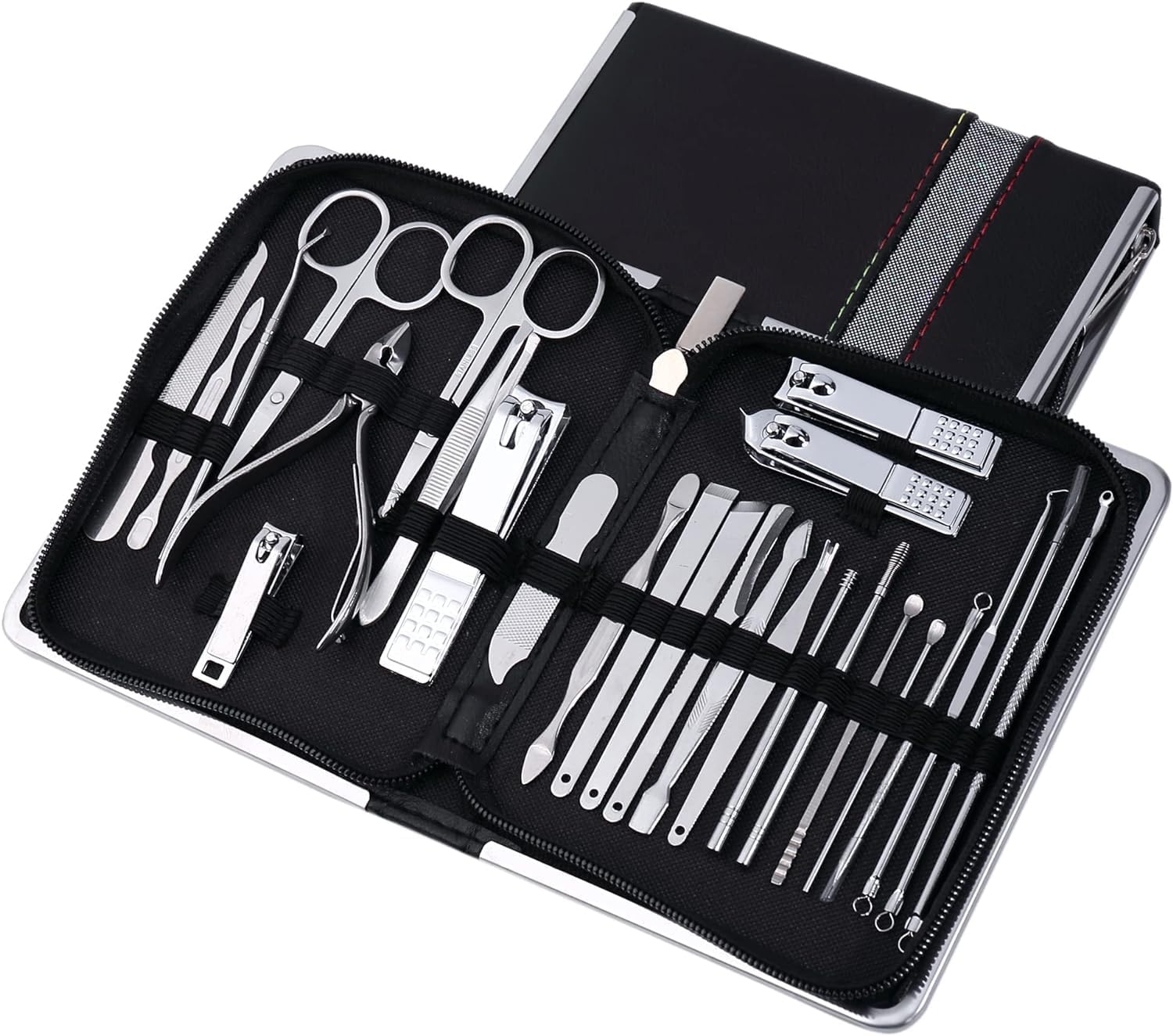 TZAONEN Manicure Set 26 in 1 Set Nail Clippers Kit – Stainless Steel Portable Travel Grooming Kit with Leather Travel Case Black