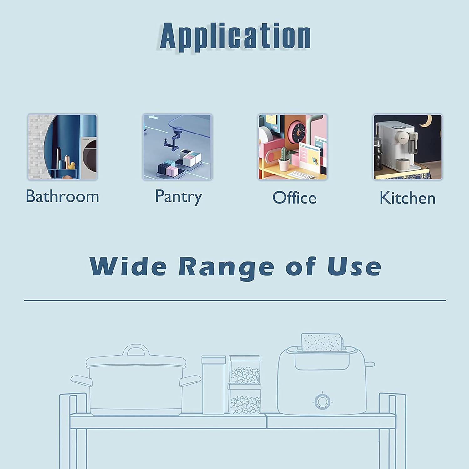 These shelves could be placed at any counter top to organize/storage your items, they are strong, nice-looking and useful.