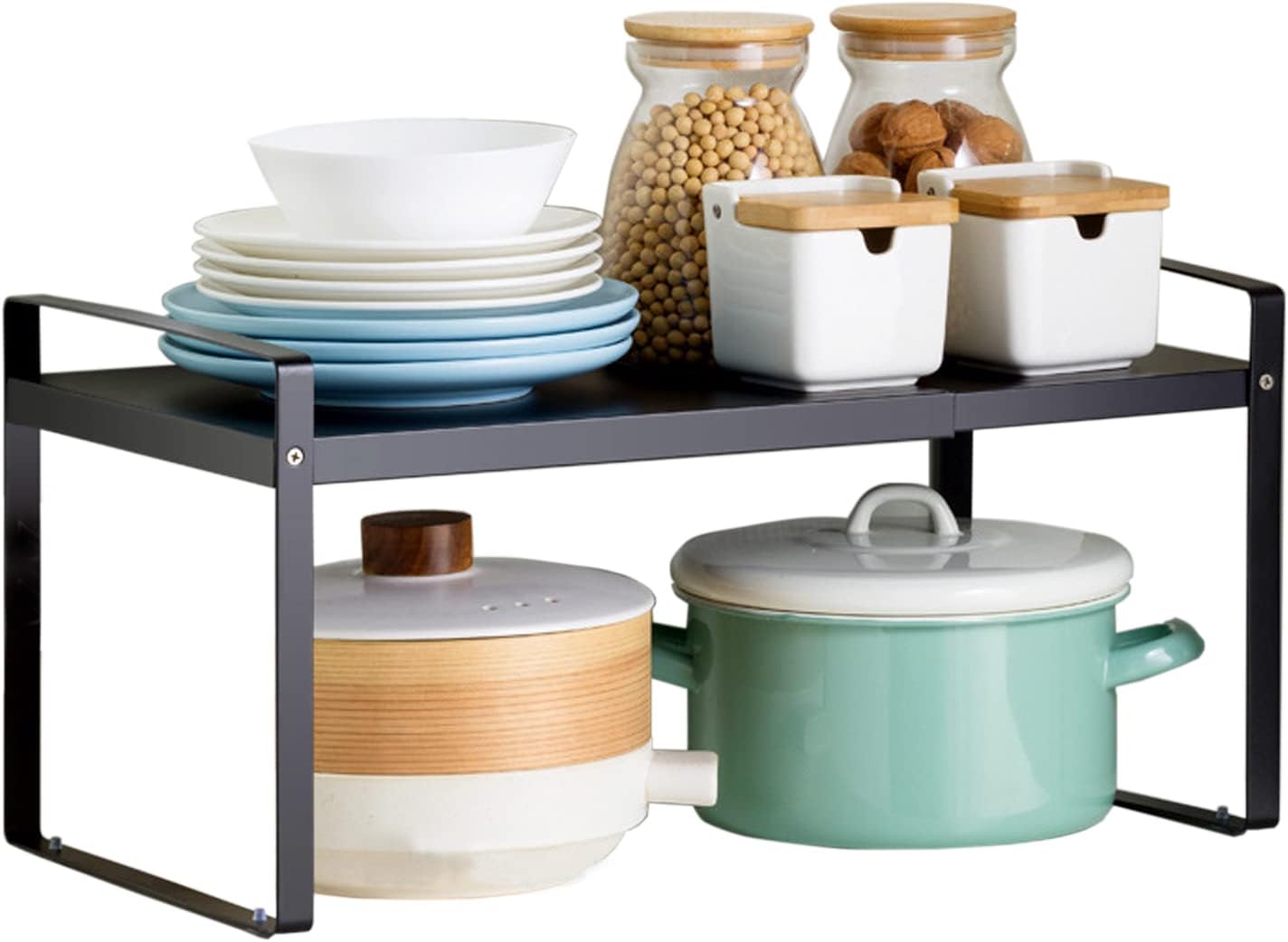 【Multipurpose】This cabinet shelf great for organizing plates, cups, dishes, bottles, seasoning bottles, and cans in your cabinet, countertop, or even bathroom, will help you to get your kitchen clean and tidy