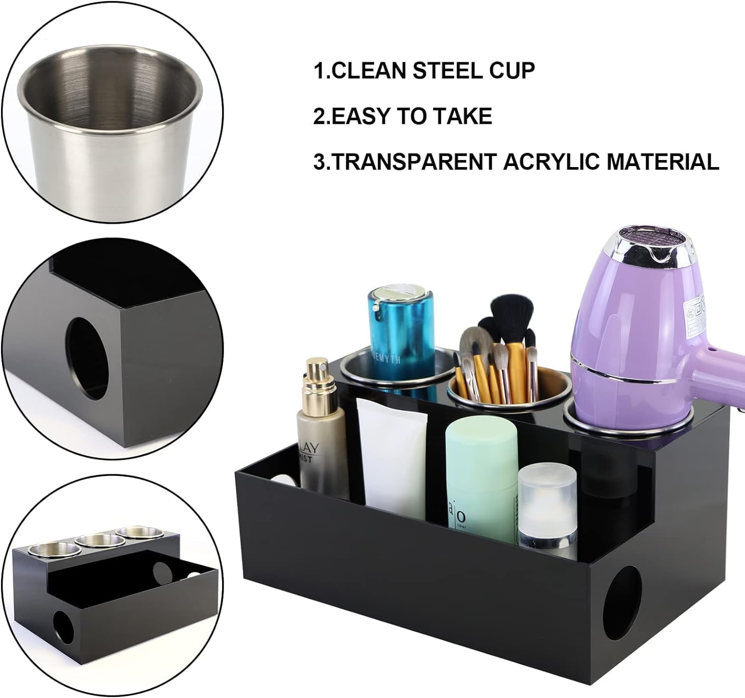 With 3 stainless steel cups, this is an ideal hot tools holder organizer for curling irons, straighteners, hair dryers, etc., making them cool quickly without damaging the other items.