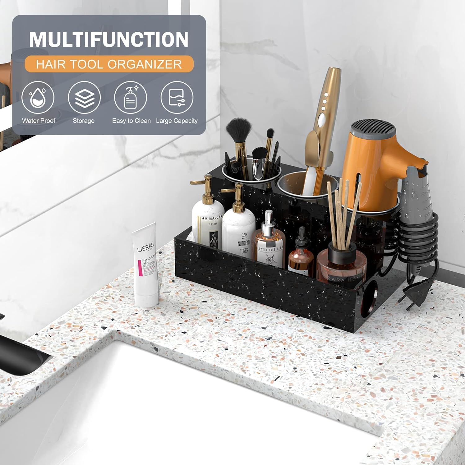 U-HOOME Hair Tool Organizer,Bathroom Countertop Acrylic Hair Dryer&Styling Hot Tool Holder,Vanity Caddy Storage Stand for Curling Iron, Blow Dryer,Accessories,Makeup,Toiletries (Black)
