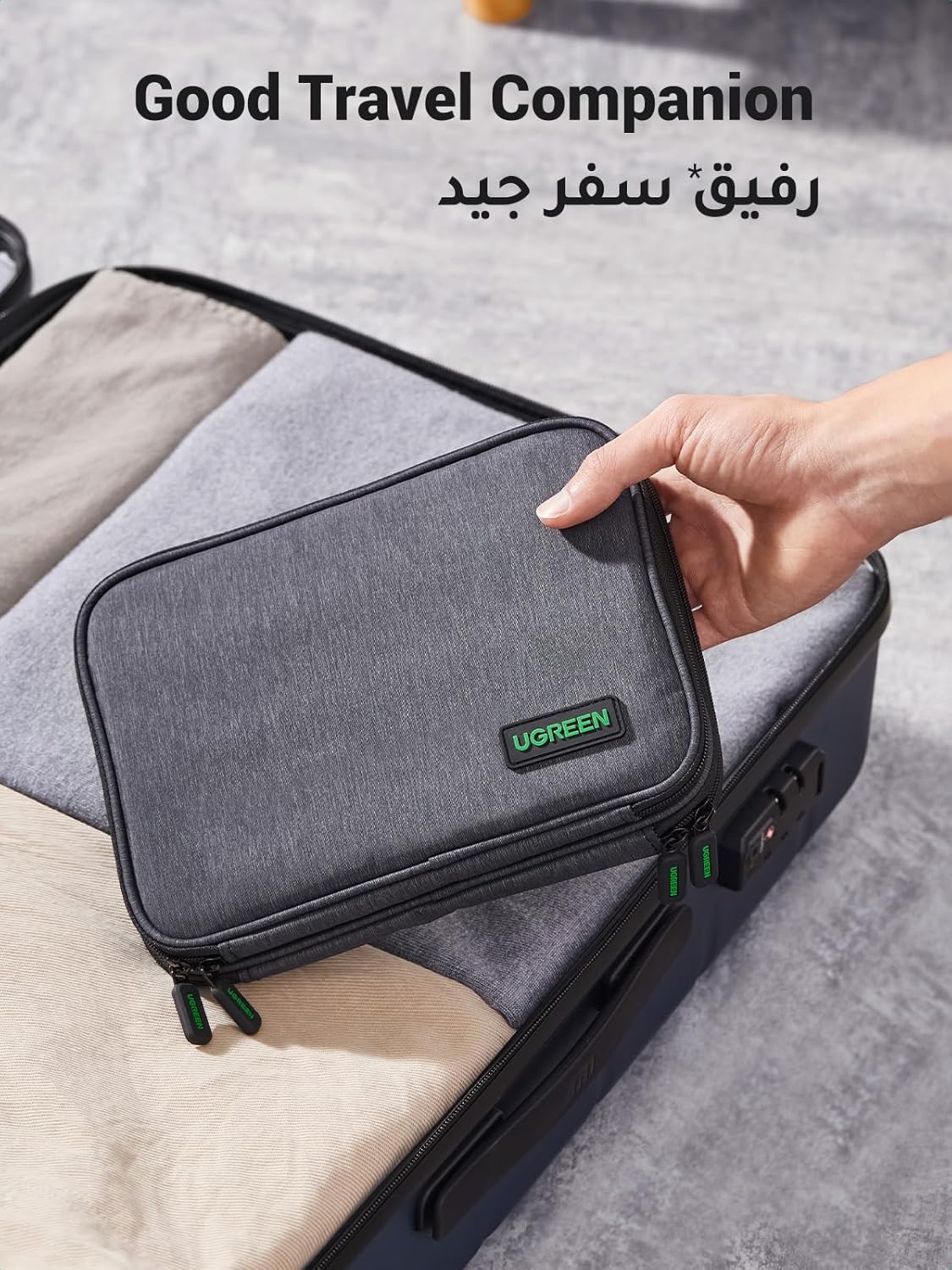 【Versatile and Handy Travel Organizer Case】UGREEN Electronics Accessories Travel storage bag is designed with elastic bands and big & small zippered mesh pockets to store the electronic accessories conveniently and flexibly. You can keep all your important digital electronic accessories in one place and make them well organised and easy to access. Perfect for a business trip, travel, holidays, school, office etc.