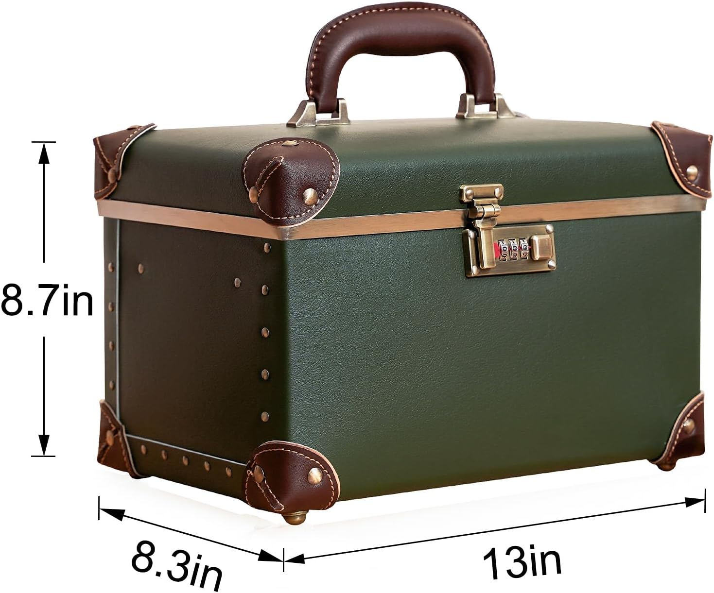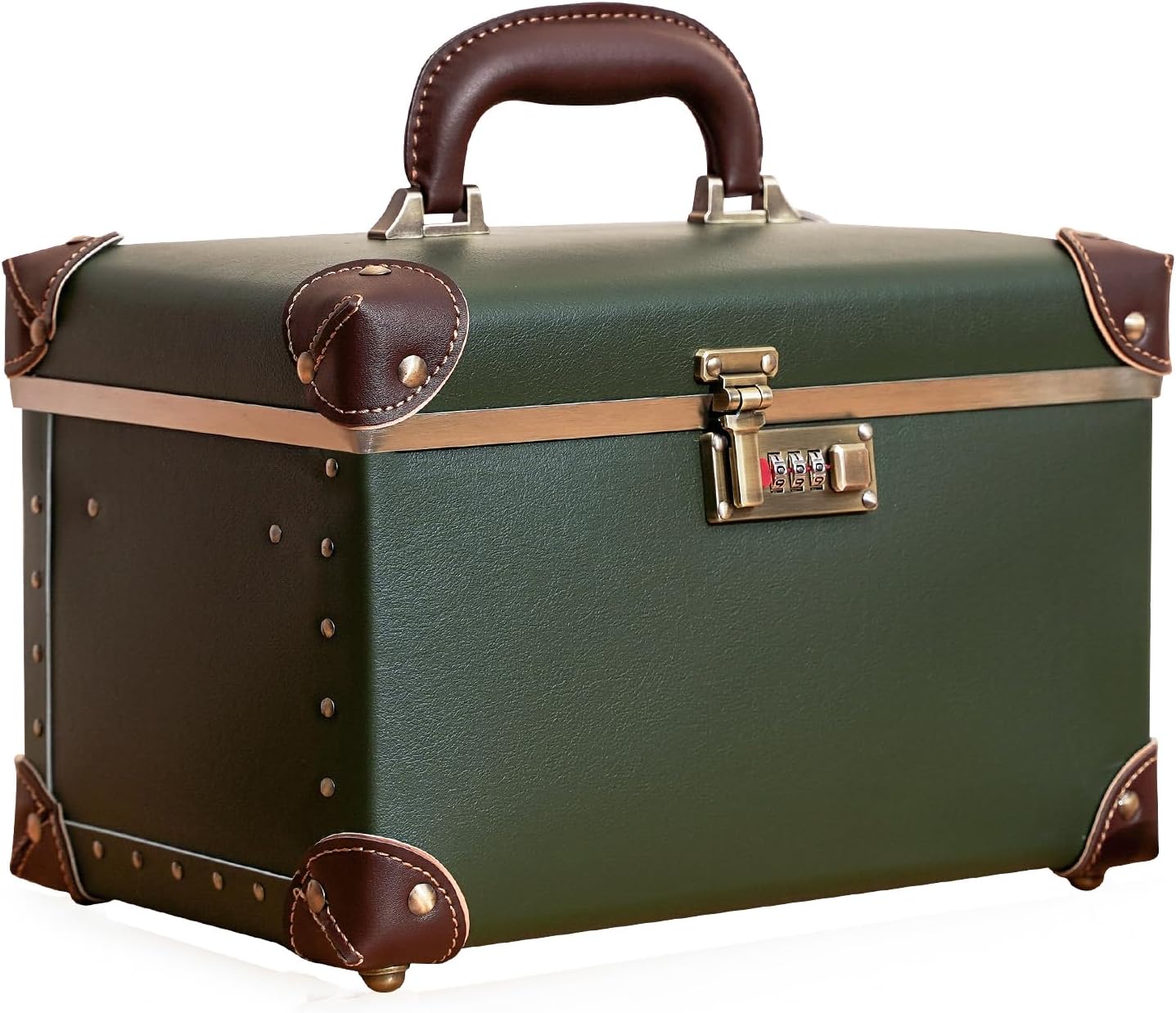urecity Vintage PU Leather Makeup Train Case 12.5″ – Lockable Hard Shell Cosmetic Organizer with Handle, Waterproof Travel Beauty Case for Makeup, Skincare & Accessories (Olive Green)