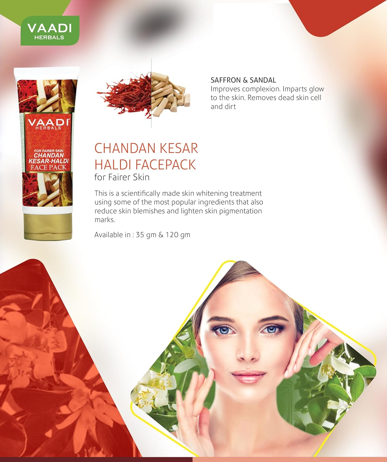 Vaadi Herbals Chandan Kesar Haldi Face Pack, 120 gm