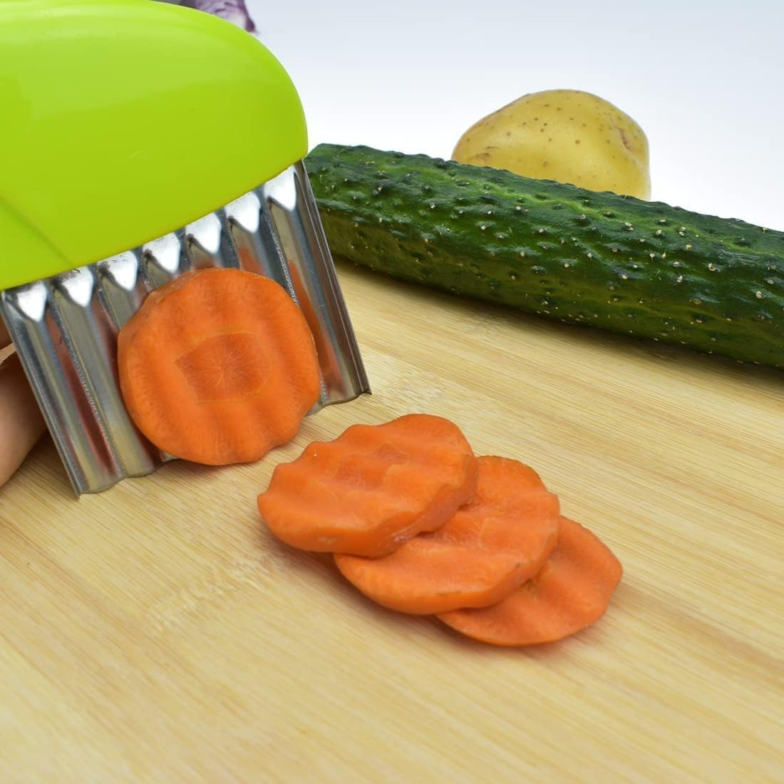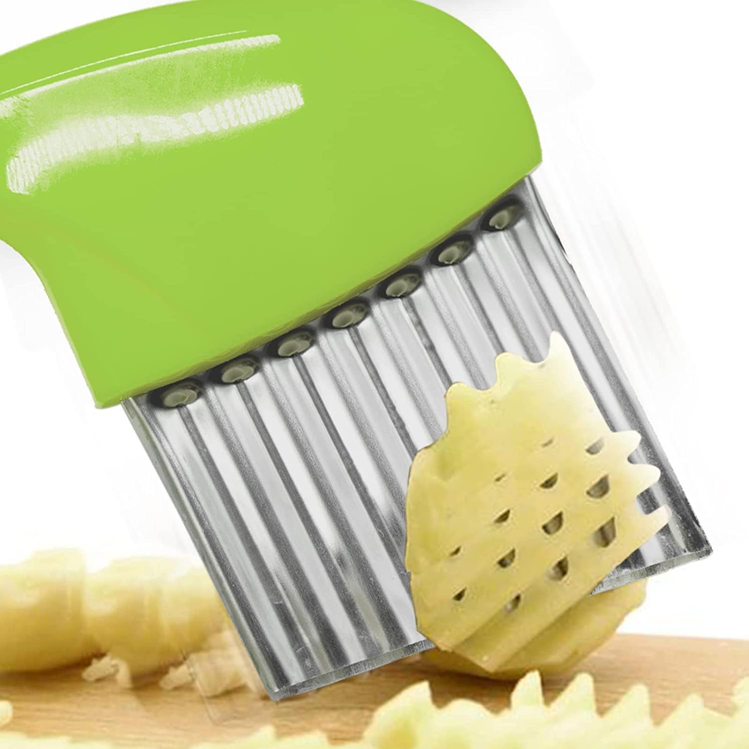 Valuxe Crinkle Cut Tool, All-In-One Multifunctional Wavy Chopper Stainless Steel Tool Assistant, Suitable for Fruits Cutter French Fry Cutting Safe Kitchen Must Have Gadgets(2 PCS Yellow & Green)