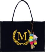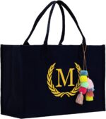 VANESSA ROSELLA Personalized Gift Monogram Initial 100% Cotton Chic Tote Bag for Women – Black, M, Large
