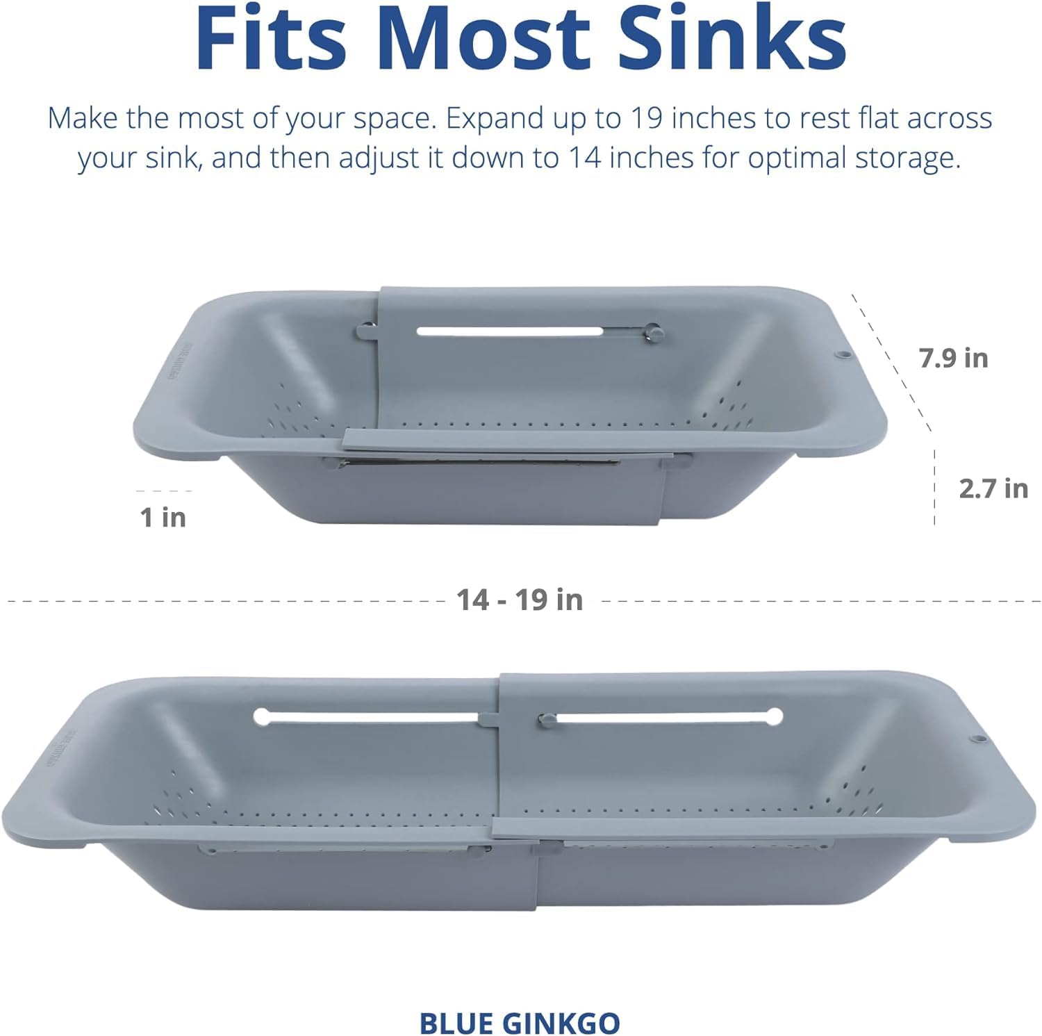 Modern Design – Adjustable, this colander expands from 14 to 19 inches to hold more or less, save space when not in use and fit most sinks. When stretched over the sink, the bottom is raised from your sink base, preventing drained pasta water from backing up into your food.
