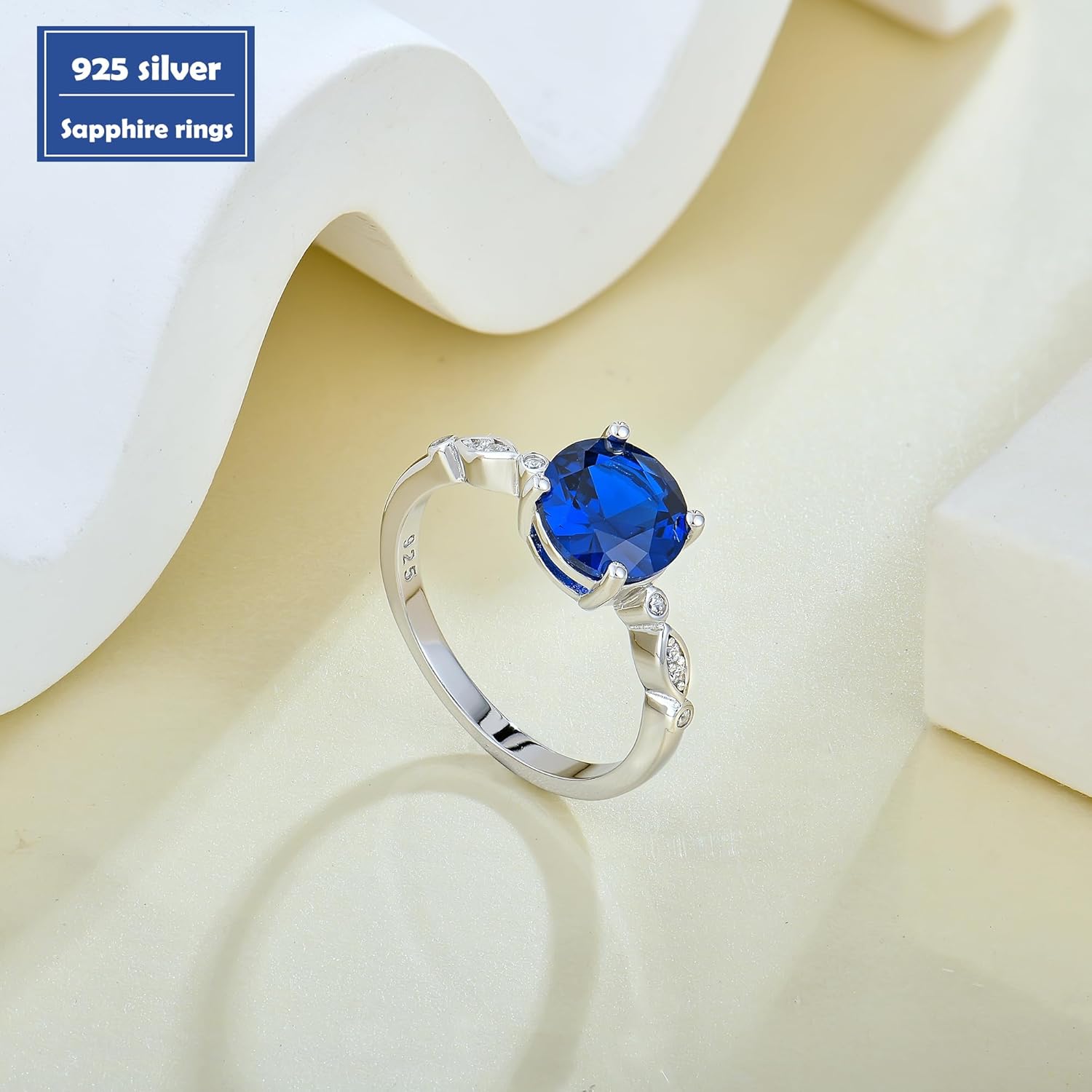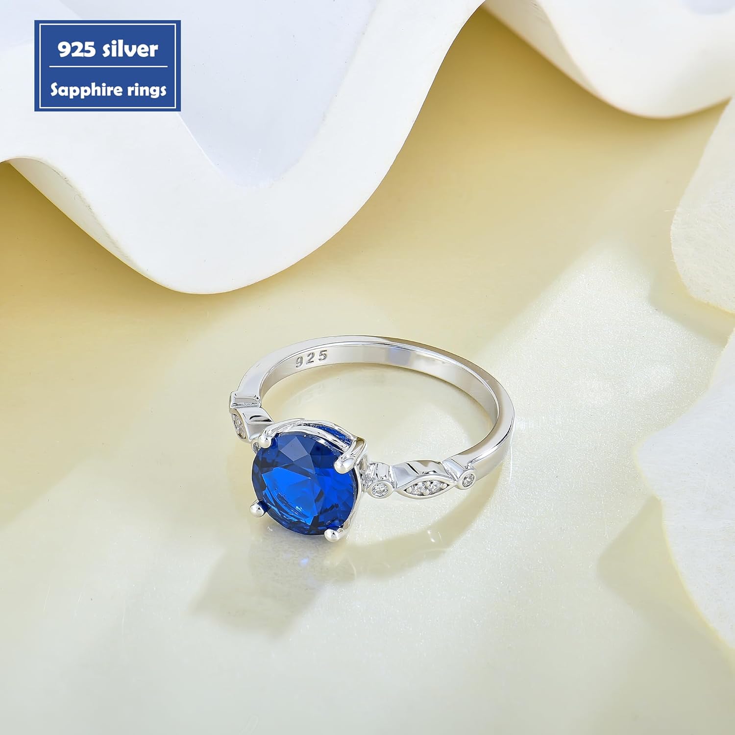 Veshon Women’s Sapphire Engagement Rings, 8MM Round Cut CZ Birthstone Rings 925 Sterling Silver Promise Ring Valentine’s Day Jewelry Gift for Women, Size 5-10