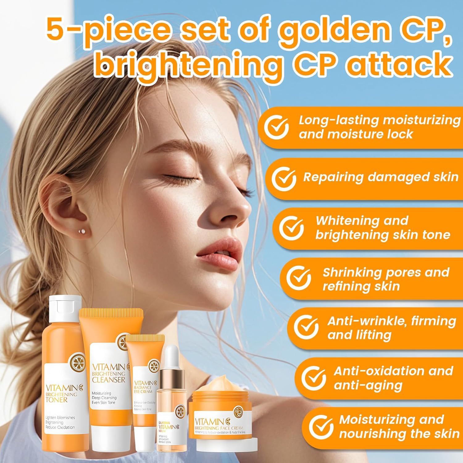Vitamin C Skin Care Set, Skincare Set, Skin Care Gift Set, 5-Piece with Cleansing, Toner, Face Serum, Face Cream and Eye Cream, Beauty Set Moisture Water