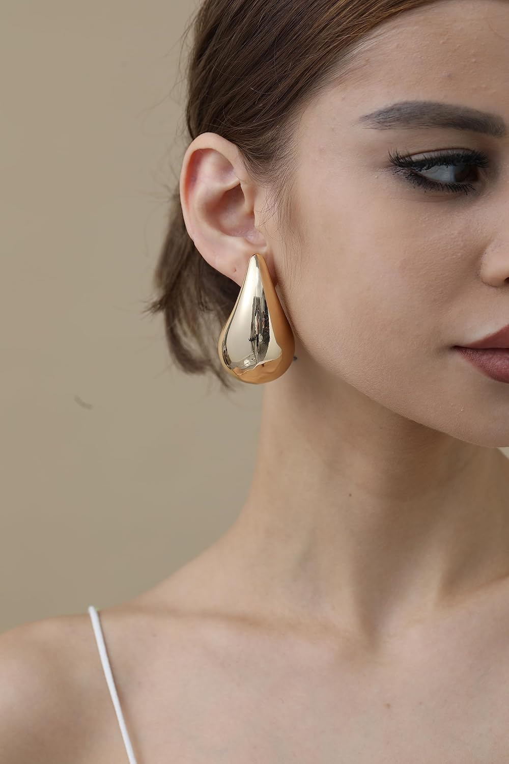 VULETO Teardrop Earrings Dupes, Gold/Silver Chunky Hoop Earrings for Women, Hypoallergenic Earring Set Drop Earrings Trendy Jewelry Gift
