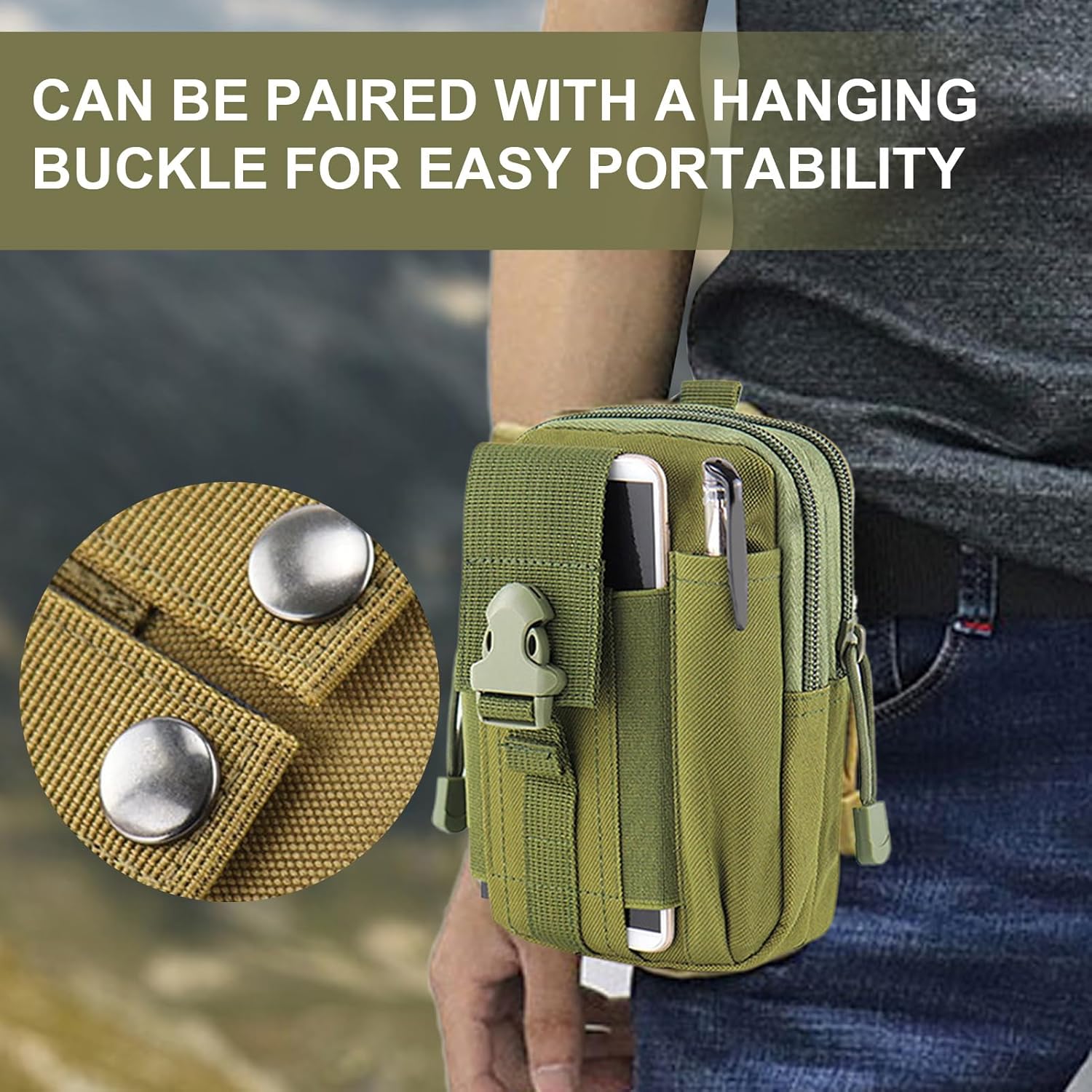 Long-Lasting Quality: This outdoor pouch includes a secure snap button closure, rustproof zipper puller, and wear-resistant Oxford fabric, ensuring consistent functionality during outdoor activities