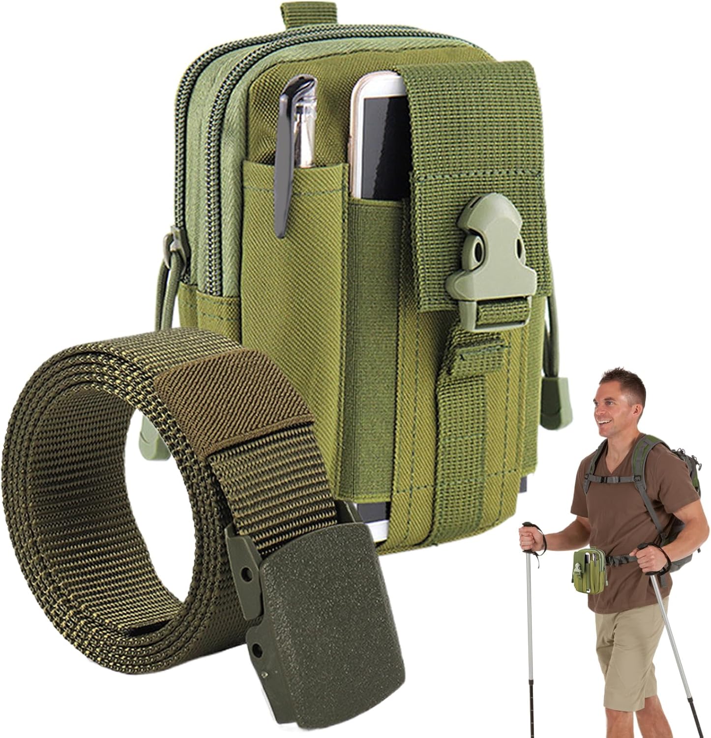 High Capacity: Combines organized internal compartments with a multi-layer phone pouch, offering an ideal solution for storing hiking items securely in a generously sized, belt-mounted storage bag, perfect for active lifestyles