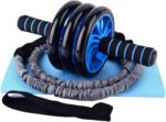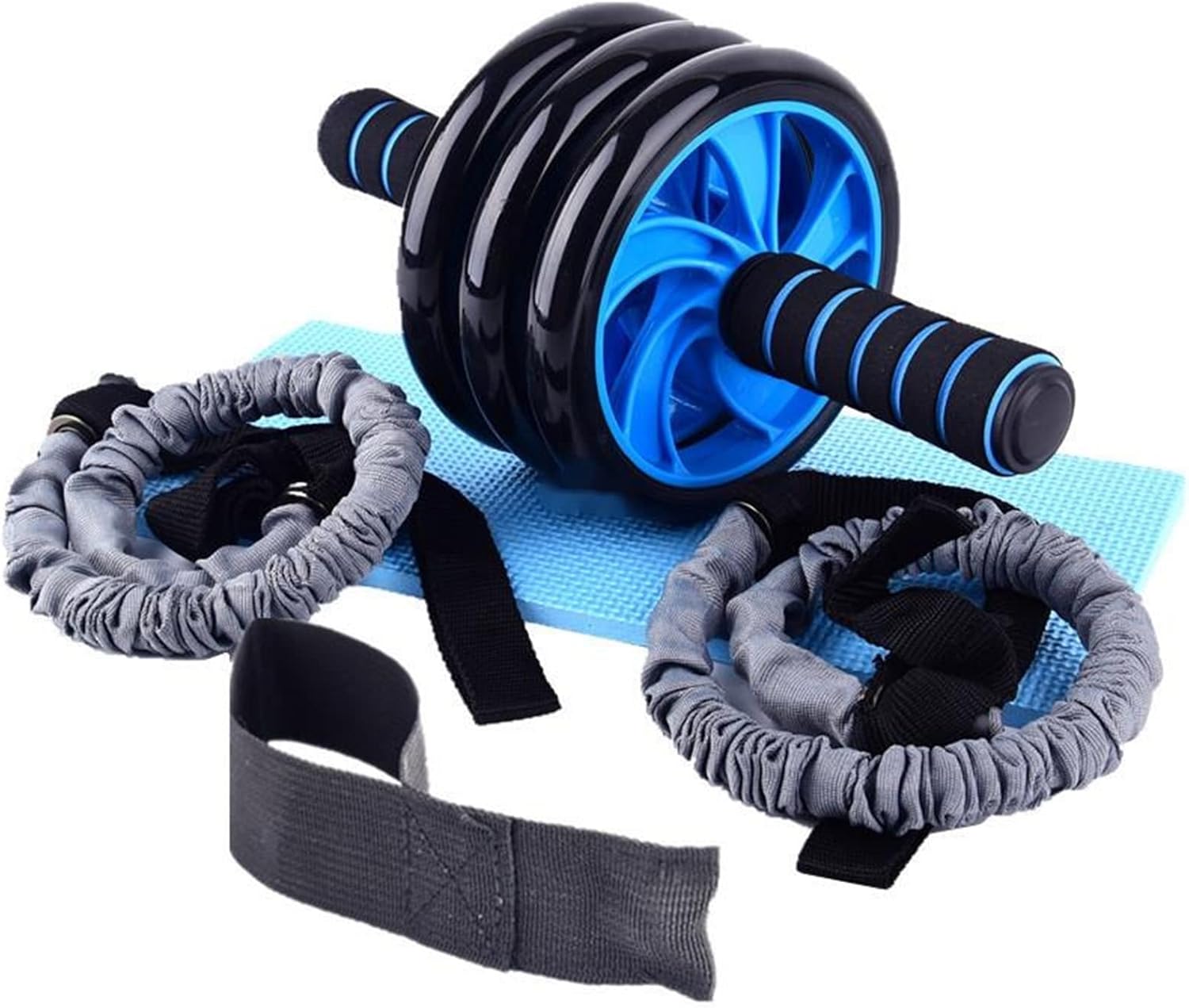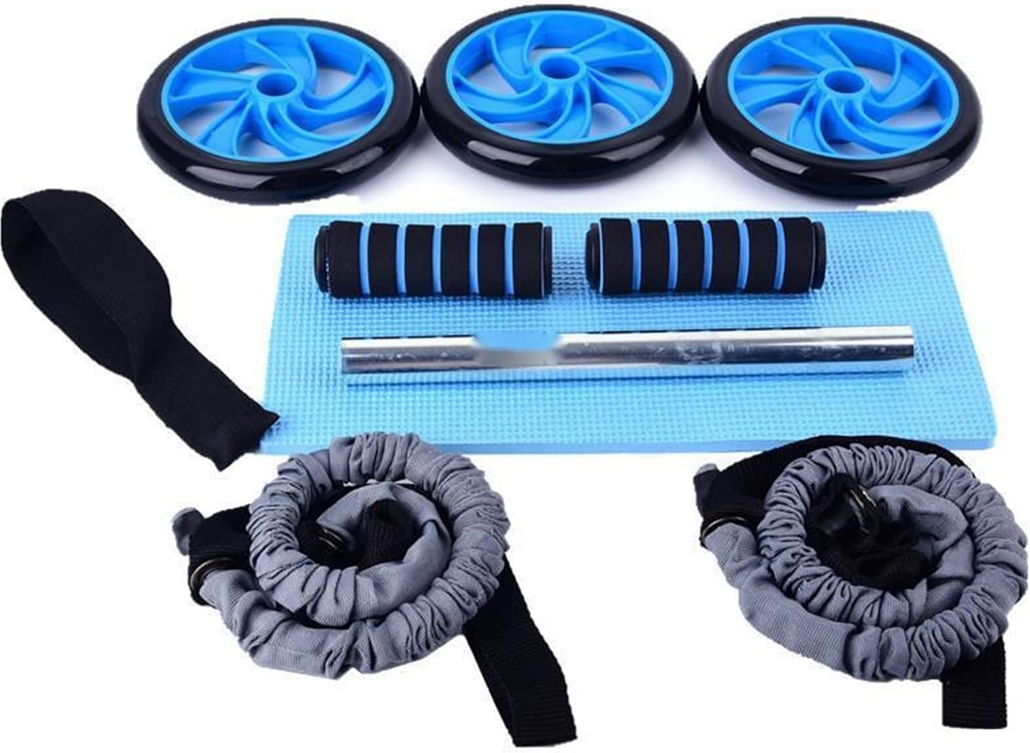 WANAM Portable Bar Adult Three Wheel Healthy Belly Wheel Suit Entry-level Portable Fitness Equipment