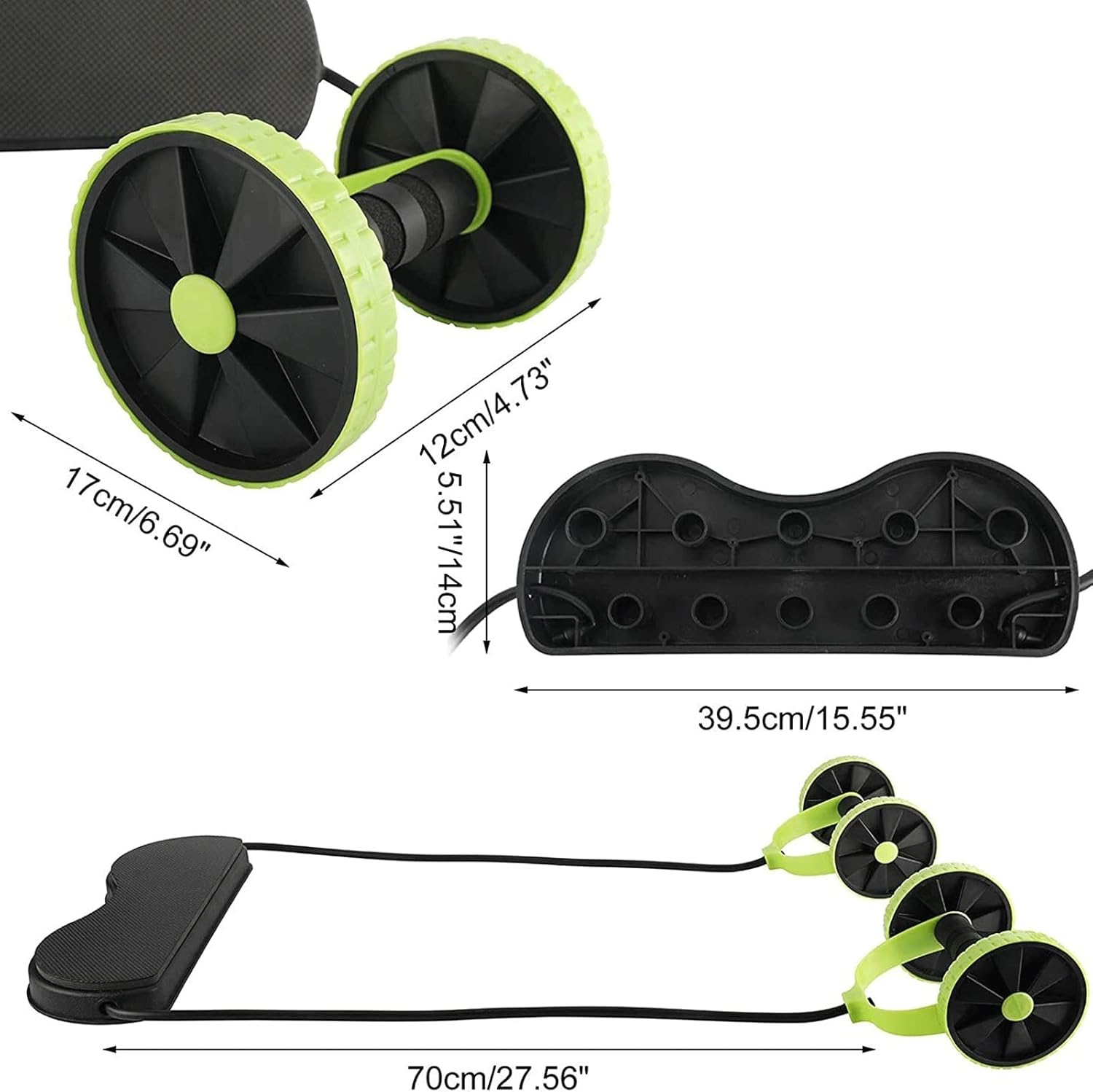 WANAM Portable Bar Wheels Roller Stretch Elastic Abdominal Resistance Pull Rope Tool Roller