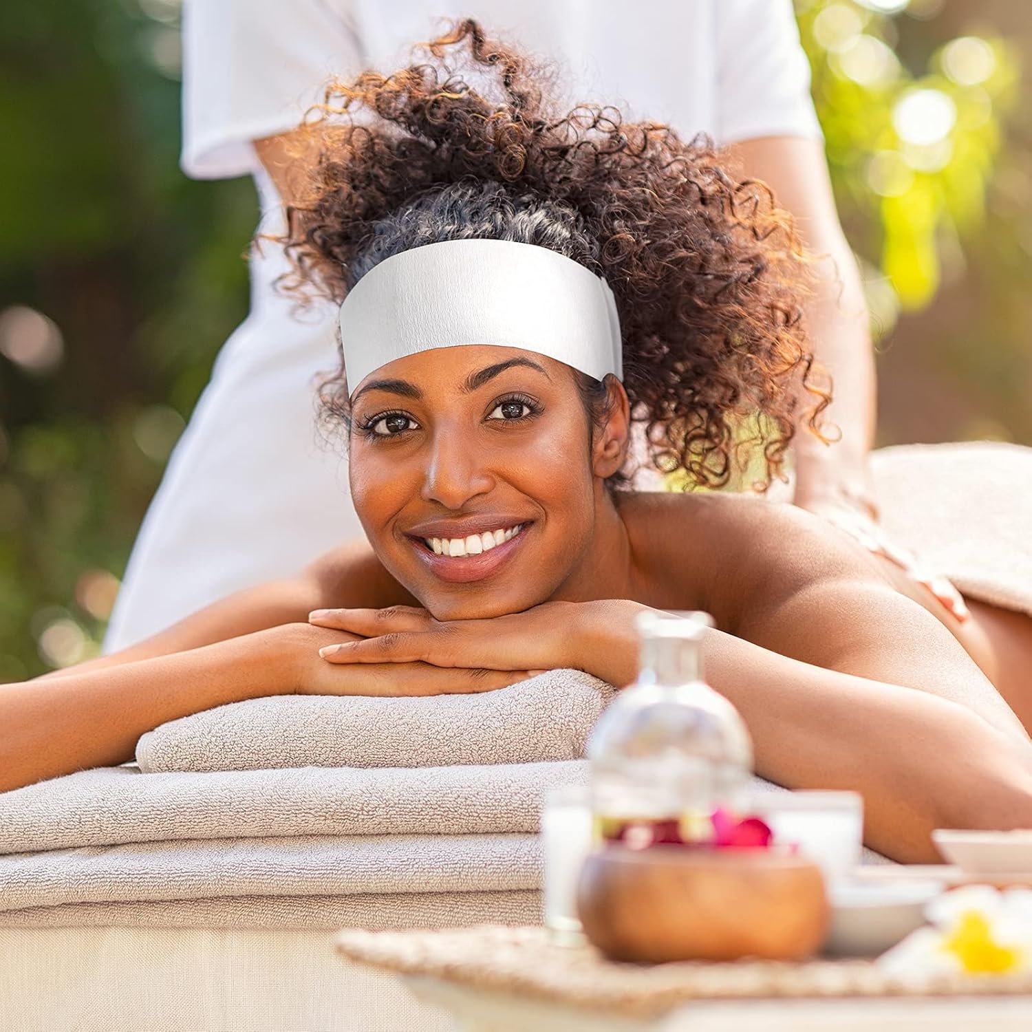 Wide application:Individually wrapped for single-use,lightweight and breathable stretch non-woven fabric,white hair bands disposable are suitable for Facial, daily use,Spa, Tanning, Make-up, Salon, Sauna, Aesthetic treatments,massage, hotel and travelling, etc