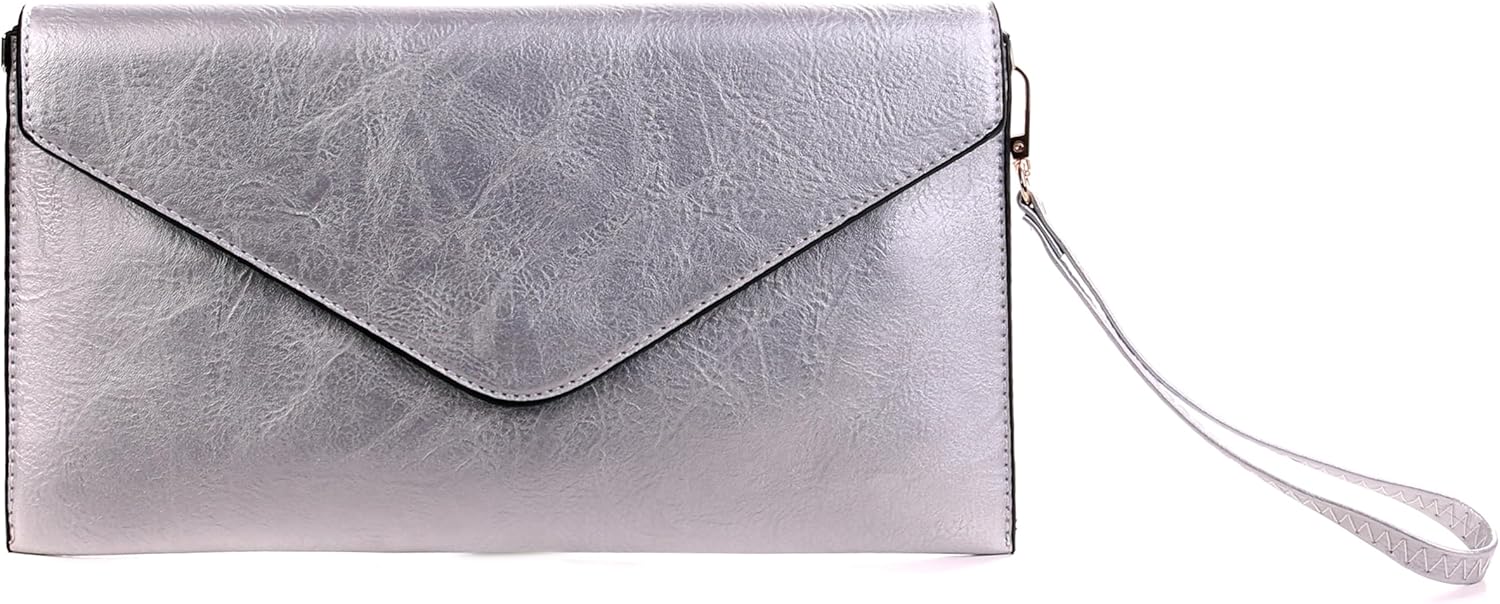 Wedmay Womens Large Clutch Bag Ladies Envelope Style Bag Wristlet Strap Evening Bag, Silver, L