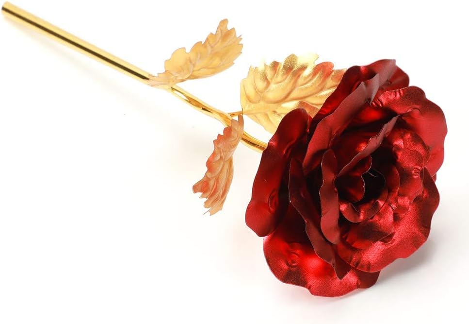 WeFoonLo Creative Artificial 24K Gold Rose Flower Plastic Long Stem Real Rose Dipped in Gold with Gift Box for Mother’s Day, Valentine’s Day, Birthday, Anniversary, Thanksgiving Day (Red+Gold)