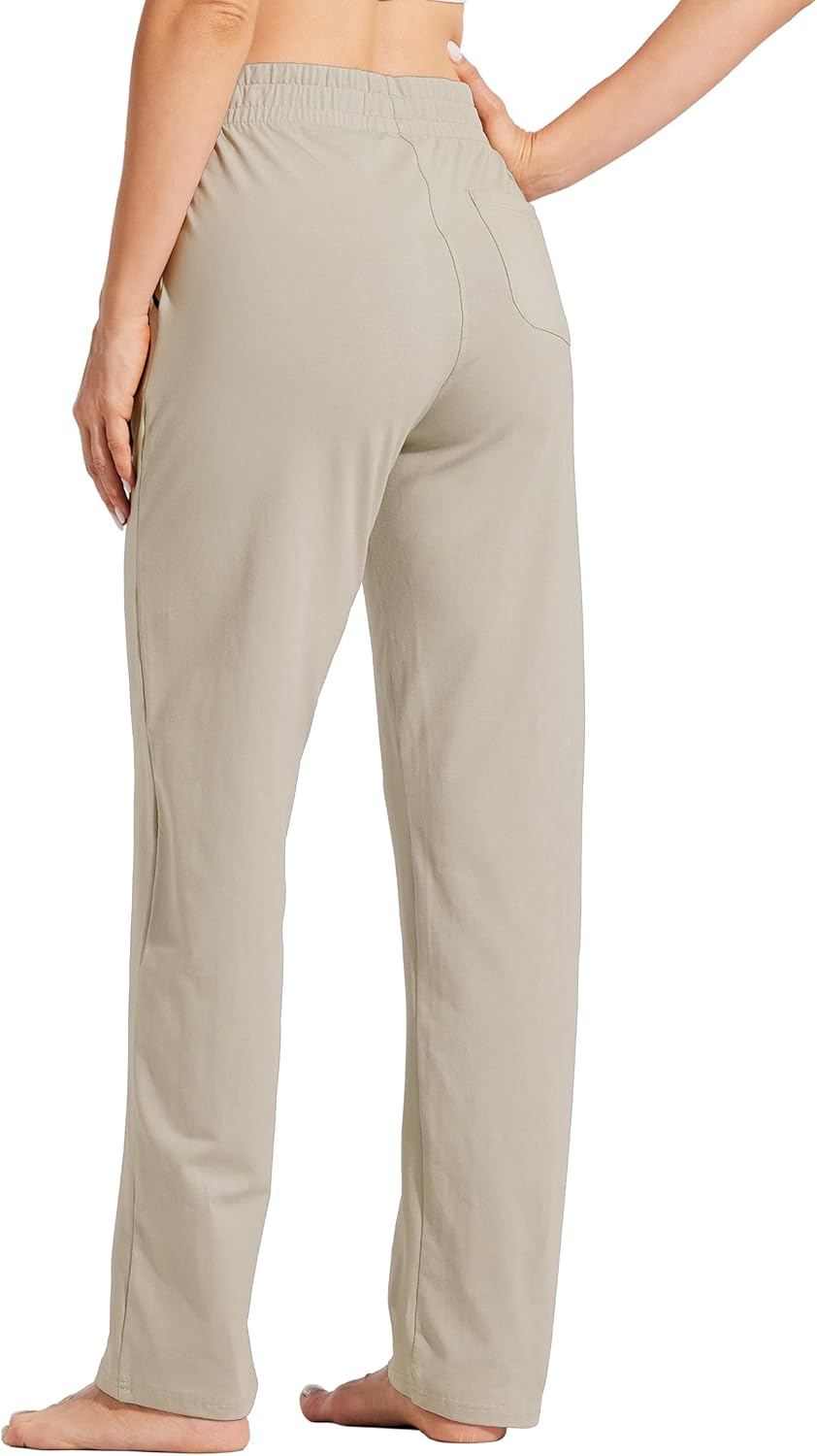 Willit Women’s Cotton Sweatpants Open Bottom Yoga Sports Pants Straight Leg Lounge Loose Fit Athletic Pants with Pockets