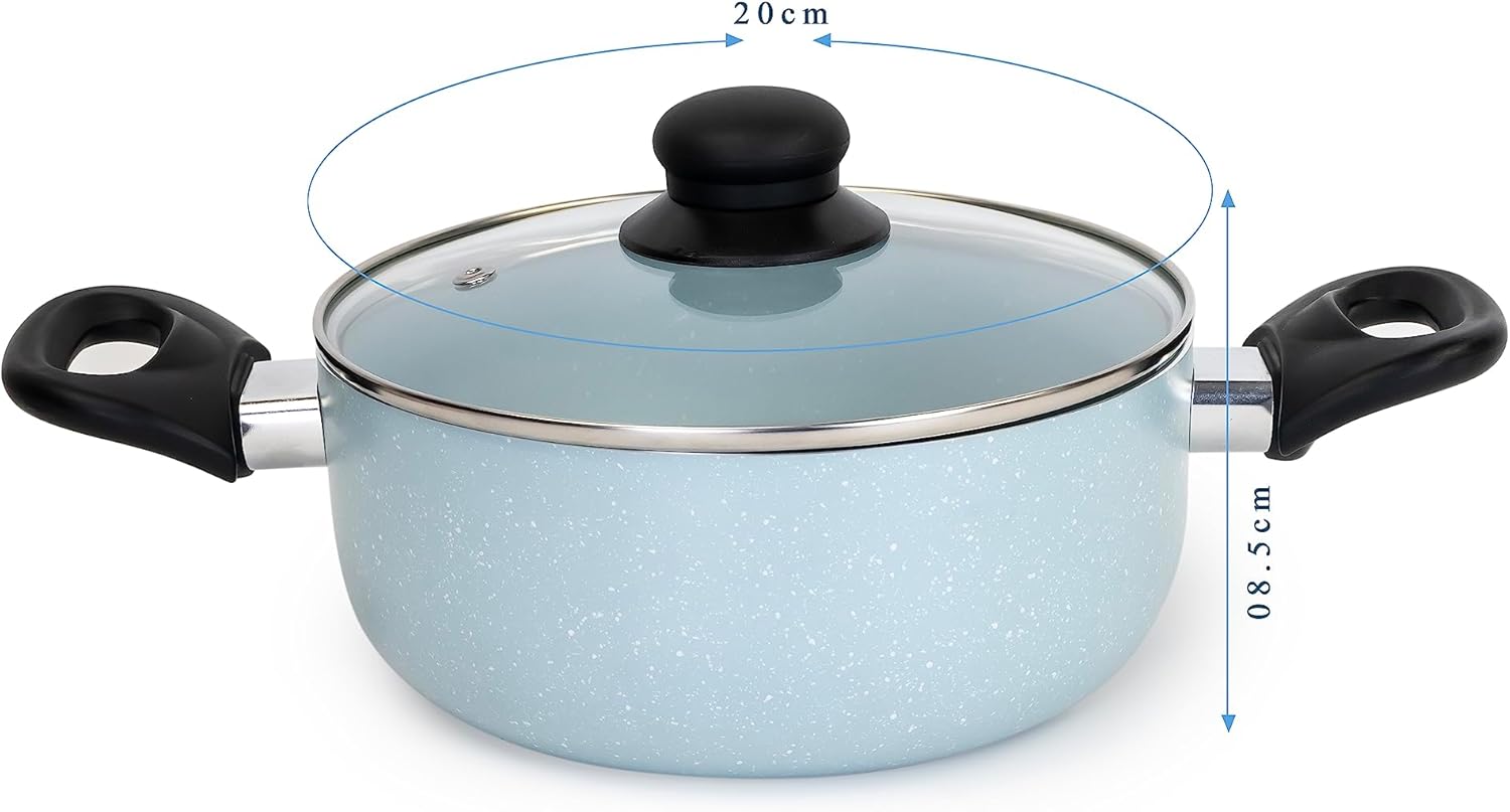 The 20cm casserole is a key component of the Aluminum Non-Stick Marble Coating Cookware Set. It boasts an aluminum construction with a non-stick marble coating, ensuring effortless food release and easy cleaning. The casserole is equipped with durable handles that are heat resistant, providing a secure grip while cooking. With its tempered glass lid, you can keep an eye on your culinary creations. This cookware set is designed to deliver exceptional performance and is perfect for a variety of cooking tasks.