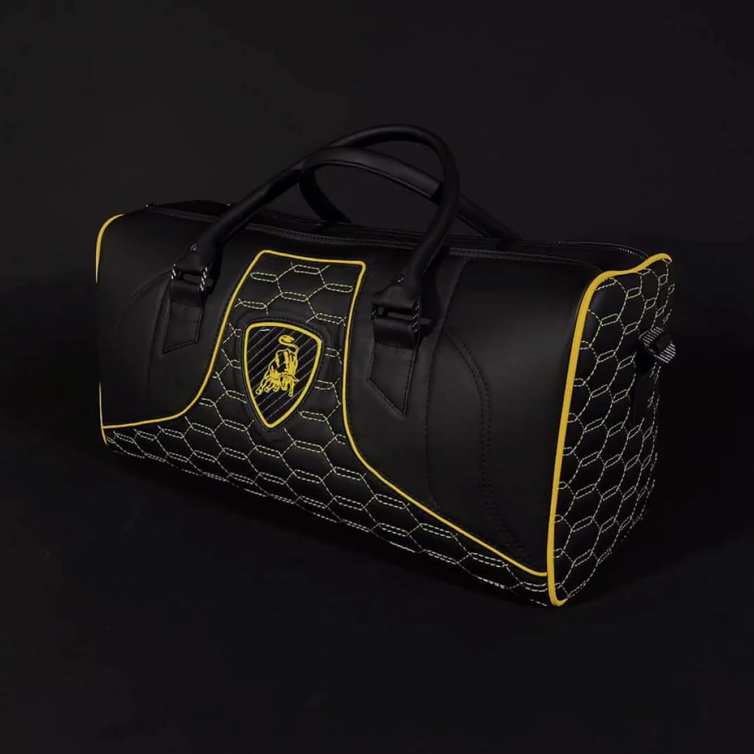 Winca Travel Duffle Bag for Women, Leather Weekender Overnight Bag with Toiletry Bag, Waterproof Carry On Tote Bag Gym Duffel Bag (Black Yellow 2)